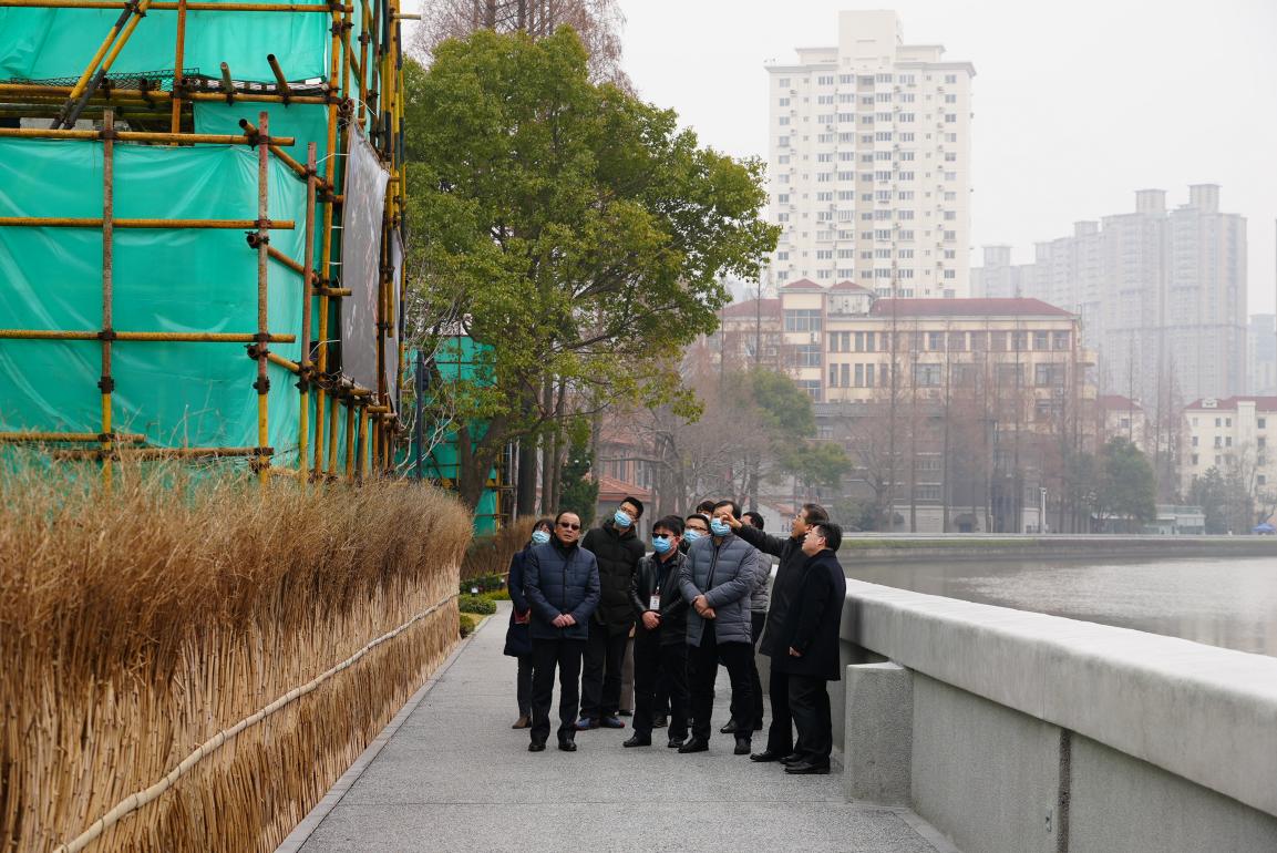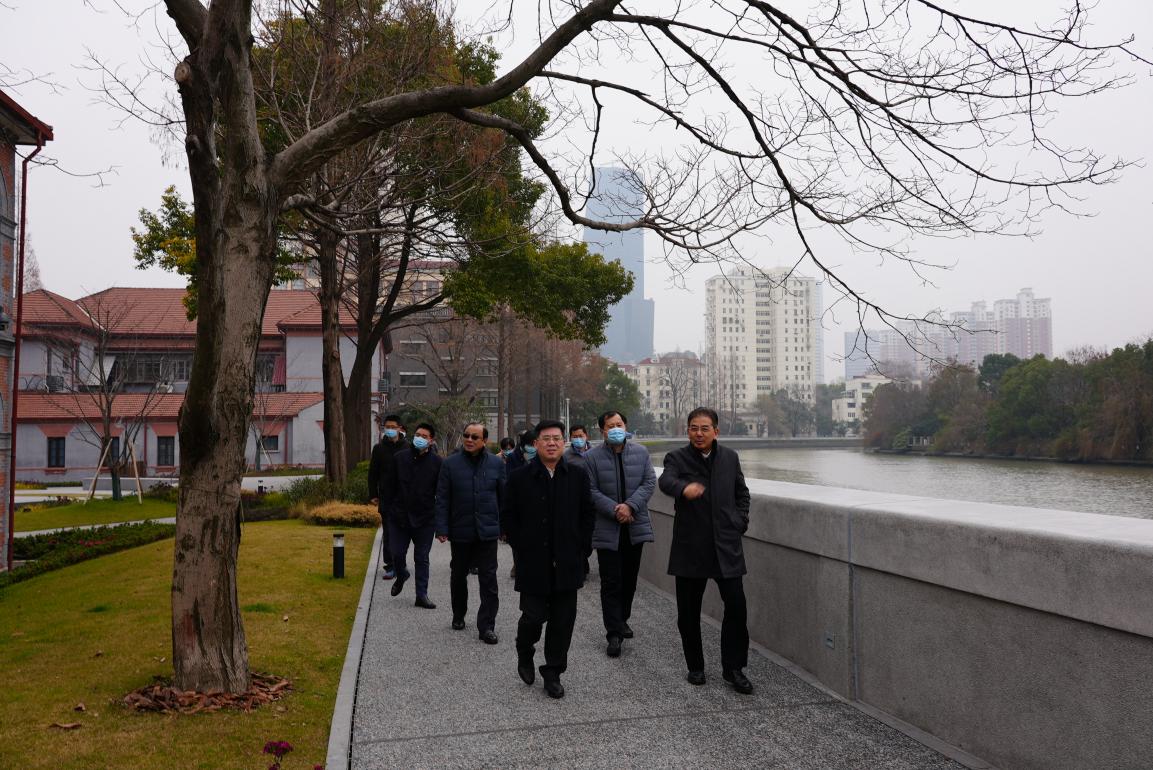 在苏州河华政段滨河步道,郭为禄详细介绍了学校滨水空间全面开放情况,表示学校积极推进校园精细化管理,在全面开放的基础上严格落实疫情防控工作不松懈,不断提升校园安全和管理服务能力。还就未来进一步提升苏州河华政段风貌景观建设的规划进行了介绍。