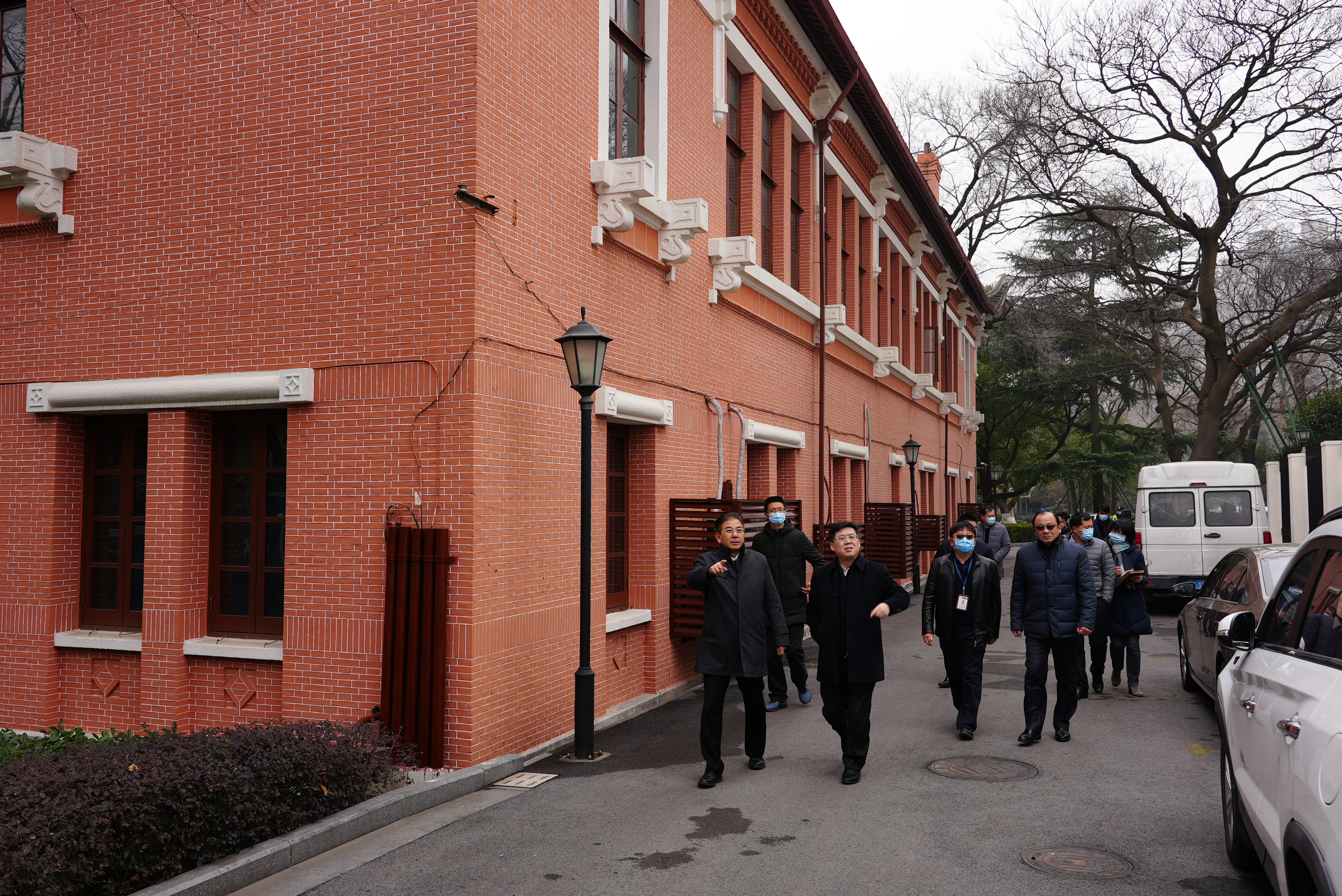 胡章萍一行沿长宁校区主干道对韬奋楼、格致楼、交谊楼、东风楼等历史建筑目前的使用和修缮情况进行了解。郭为禄介绍到,我校的历史建筑群在中国近代教育史和中西文化交流史上具有重要意义,这些承载着丰富历史记忆的校园建筑已成为上海珍贵的城市历史文化遗产,我校未来还将继续积极稳妥地推进校园历史建筑的保护修缮工作。