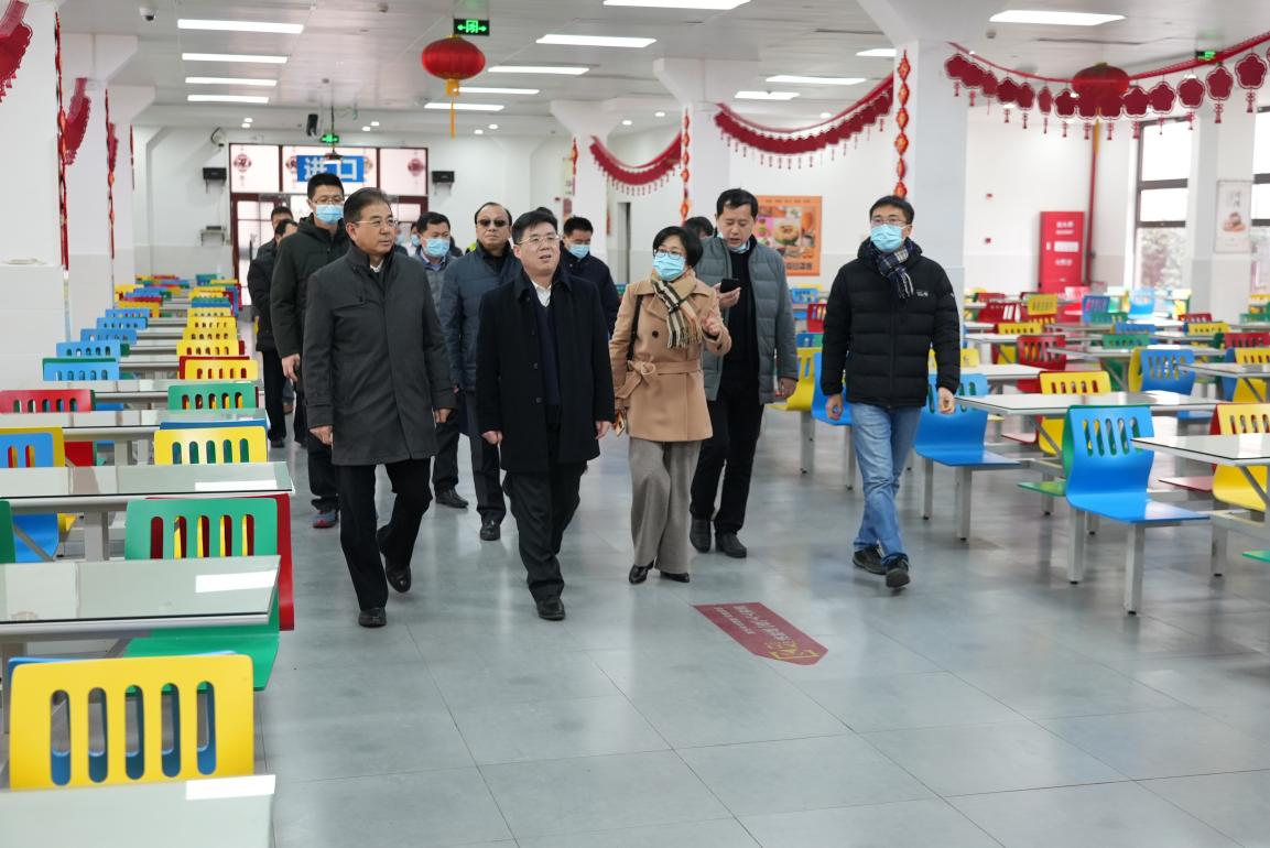 1月25日下午,我校迎接两委“促发展、保安全”大走访大排查实地检查,驻市教卫工作党委纪检监察组组长胡章萍、干部李辉,市教委后保处干部吴巍在长宁校区走访调研,察看我校疫情防控落实、校园安全管理、食堂餐饮卫生等相关工作。校党委书记郭为禄,党委副书记、纪委书记应培礼,副校长周立志和纪委、学校办、后勤管理处、基建处、保卫处、图书馆等相关部门负责人陪同检查。