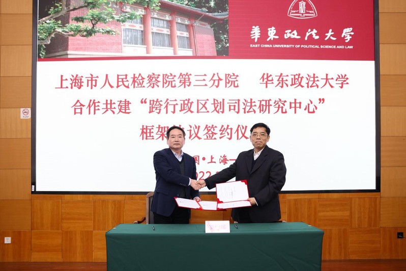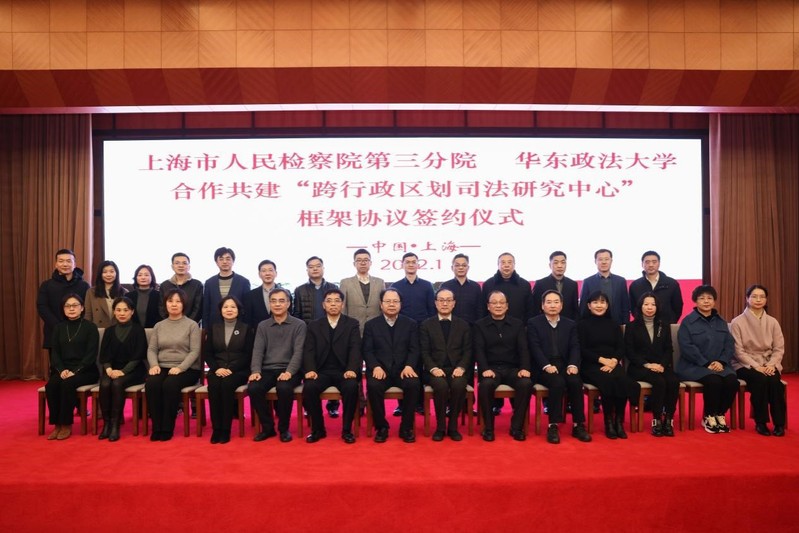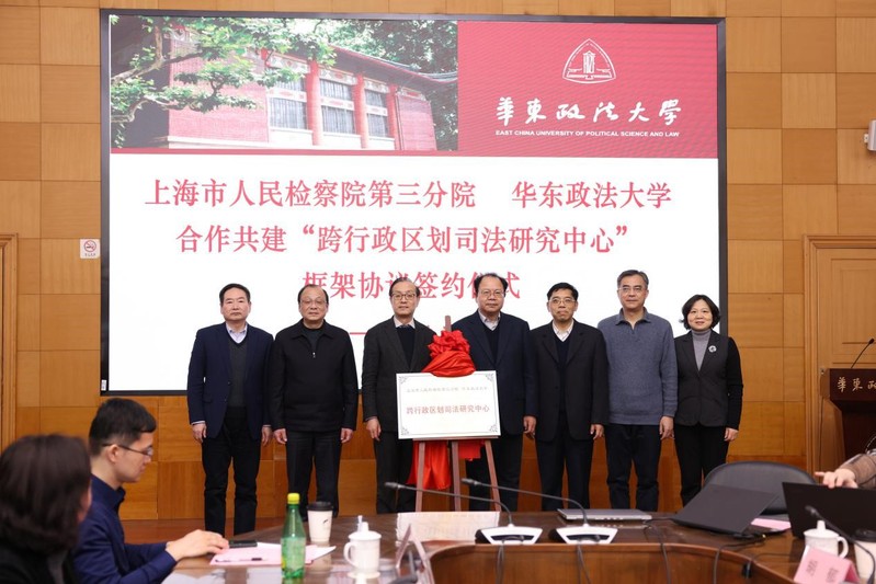 近日,我校与上海市人民检察院第三分院(以下简称“三分院”)在长宁校区签署框架协议,合作共建“跨行政区划司法研究中心”。上海市人民检察院第三分院党组书记、检察长徐燕平,党组成员、副检察长谈信友,党组成员、副检察长高孝义,党组成员、政治部主任文岚;校党委副书记、校长叶青,党委副书记、纪委书记应培礼,副校长张明军以及第三分院和学校相关部门及专家代表参会。签约仪式由应培礼主持。