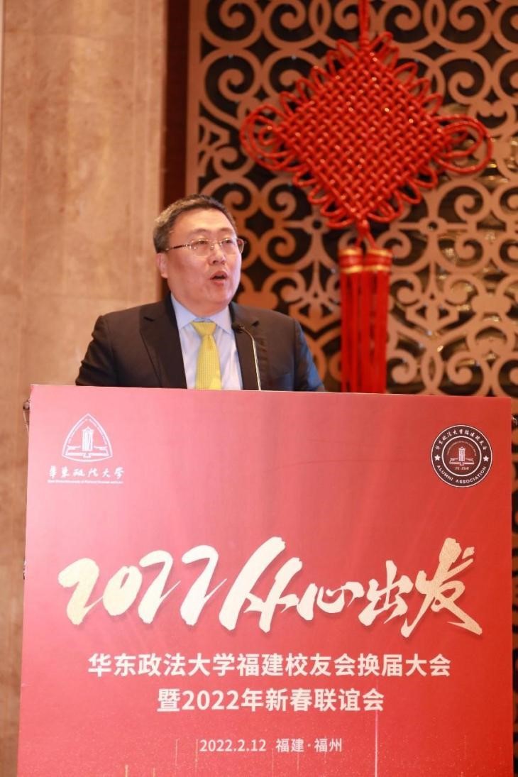 当选会长许永东校友代表第四届理事会发言。他用六个字表达感想:第一是“感恩”,感恩母校,感恩老师,感恩校友;第二是“传承”,将接过旗帜、赓续发展、传承好“华政精神”;第三是“使命”,将牢记“为母校争光、为校友服务、为福建作贡献”的校友会宗旨,不辱使命,奋力作为。