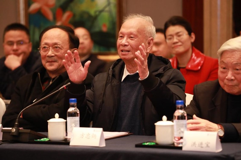 座谈会前,郭为禄、应培礼与上世纪50年代入学的方忠炳、洪进宝校友亲切会面,向两位老学长介绍学校发展情况。