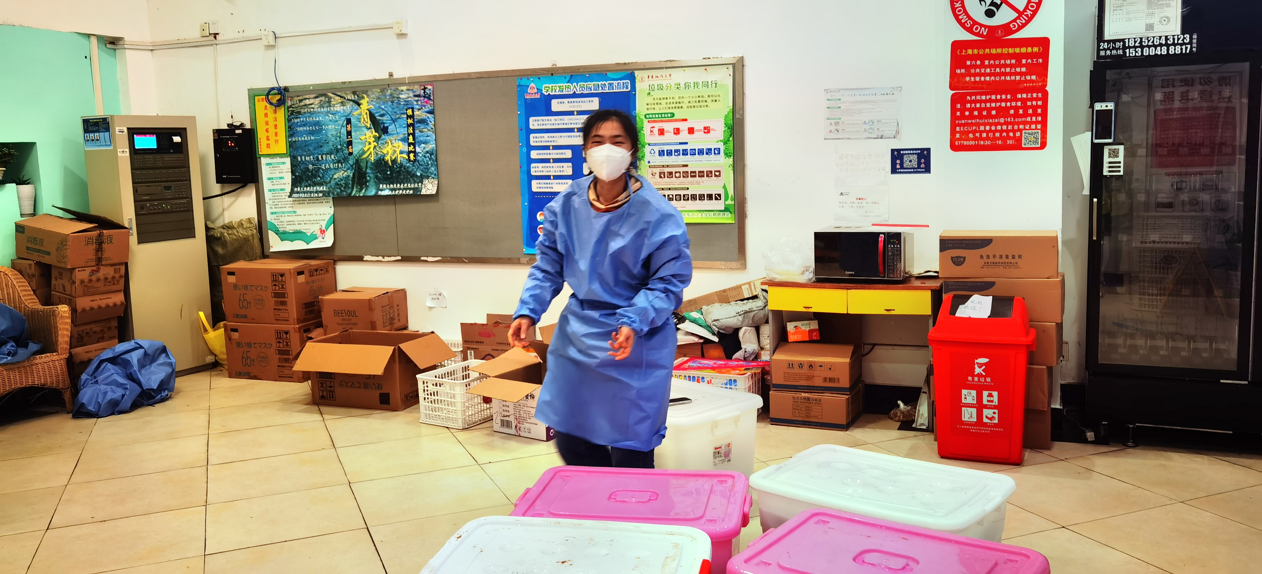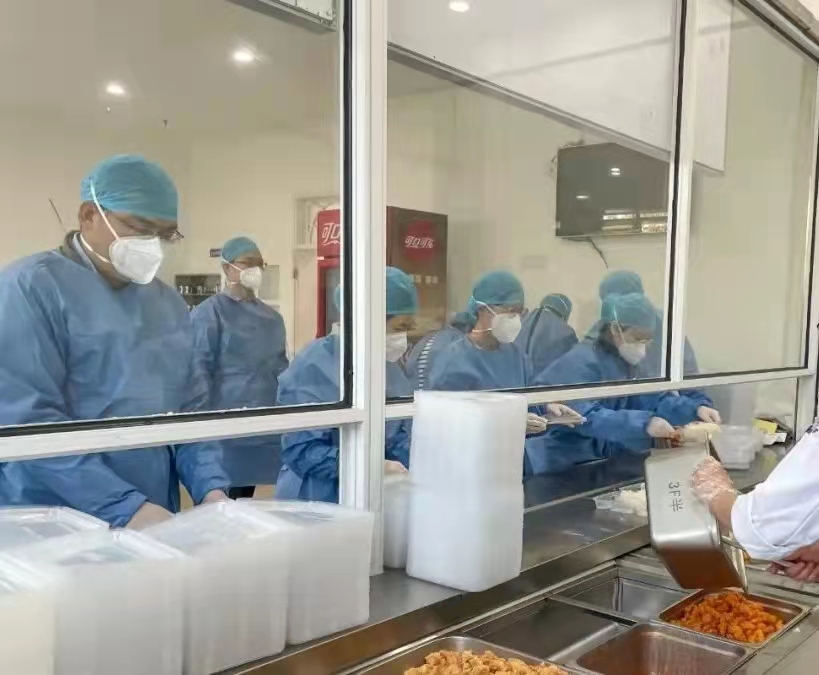 在餐饮保障方面,闭环管理期间在校师生员工约12000余人,超过校内食堂供餐能力,学校食堂克服重重困难,不断调整供餐模式,同时兼顾菜品营养搭配和特殊配餐需求,顺利完成全校师生员工的供餐任务。学校实行网格化管理之后,送餐队伍人手紧缺,全校教职工接过志愿服务接力棒,化身最给力配餐员、送货员,装饭、搬运、爬楼,教授们前一秒上课,下一秒送餐;校长为学生打包午饭成为新浪微博热搜话题,有学生表示:“热度是一时的,但留下的温度却是持久的,爱和希望比病毒蔓延得更快”“这是‘以教师为第一、以学生为根本’的新时代华政帐篷精神的体现”。