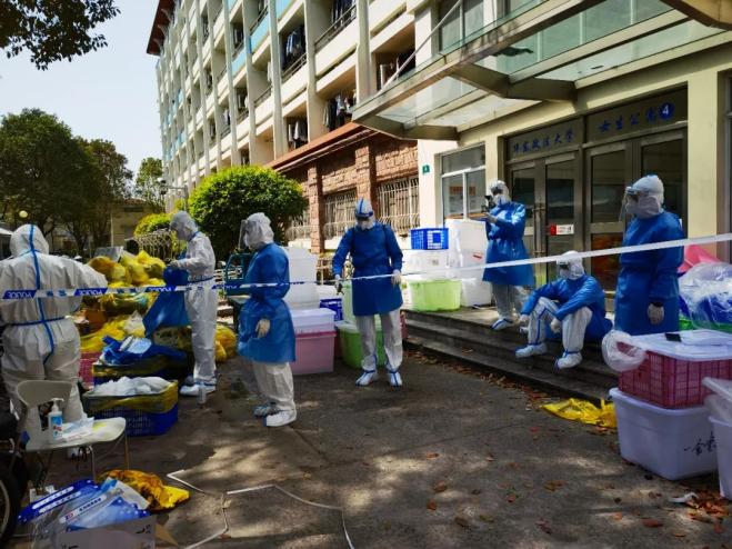 在医疗条件保障方面,学校依靠政府,在市领导的指挥下、市教卫工作党委和松江区委区府的协调下,有效解决了疫情防控中师生最迫切的“核酸难、转运难”问题。松江区第一人民医院、松江区中心医院等医疗团队火线驰援,协助我校开展全员核酸检测。松江区委区府在运力紧张、资源有限的情况下,优先解决学校密接、次密集近百余人次的转运和隔离点安置等问题。