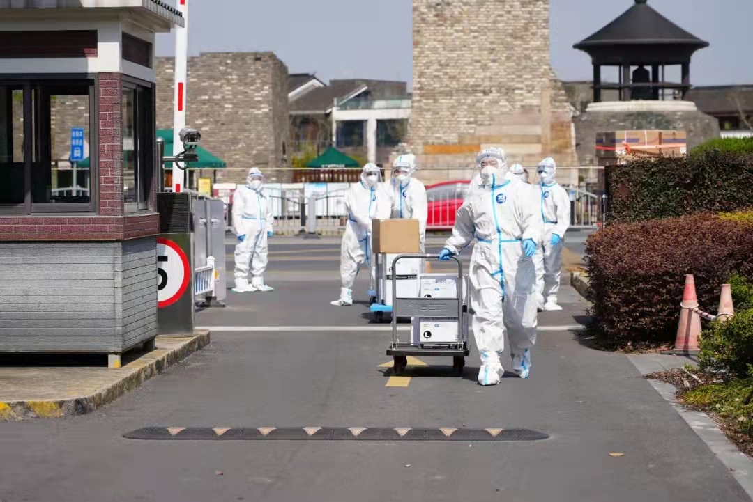 学校火速招募教师志愿者,成立若干“运输小分队”。全体校领导带头走上餐食分发、物资运送等岗位。800多名教师穿上“大白”“小蓝”,将饭菜、物资送到每一栋学生公寓楼下,由楼长、层长们分发到学生手上。8名机关干部主动请缨组建“党员突击队”,走进集中隔离楼宇,为足不出户的同学们提供服务保障。全体教师在站稳云讲台的同时,充分利用抗疫这本生动的教科书,以身为范、立德树人。