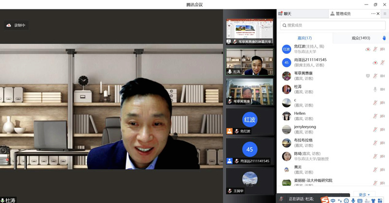 4月14日,由我校研究生院主办、国际法学院承办的“相约大咖 同心抗疫”云端讲堂系列讲座第五讲成功举办,联合国国际法委员会委员、国际常设仲裁法院仲裁员、中国外交部国际法咨委会主任委员、国家高端智库武汉大学国际法研究所特聘教授黄惠康应邀作“当前国际形势和国际法热点问题”讲座。此次讲座也是我校研究生格致大讲堂第161讲,由我校国际法学院院长杜涛教授主持。
