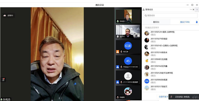 4月19日,由我校研究生院主办、法律学院承办的“相约大咖 同心抗疫”云端讲堂系列讲座第七讲顺利举行,全国人大代表、全国人大宪法和法律委员会委员、中国法学会民法学研究会常务副会长、中国社会科学院法学研究所研究员、中国社会科学院大学法学院特聘教授孙宪忠应邀作“以集体成员权为基础推动农村集体经济组织立法”讲座。此次讲座也是我校研究生格致大讲堂第163讲,由我校法律学院院长金可可教授主持。