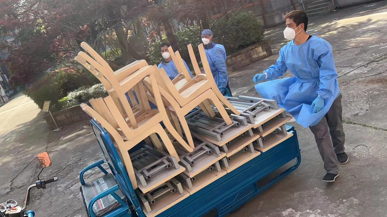截至目前,长宁校区多方筹措和接收的防疫和生活物资,切实提升了生活保障水平。通过多方联络系校友和企业,我校获捐N95口罩、一次性医用口罩、防护服、隔离衣、一次性医用手套、消毒液、额温枪、莲花清瘟颗粒等等紧缺的防疫物资,为校园抗“疫”筑起安全防护墙。根据长宁校区疫情防控的需要,学校在河东校区紧急设置隔离点。为配合学校隔离点建设的迫切需求,基金会4月7日以来发动一切渠道和资源,在市场物资紧张和物流运力严重不足的情况下,想尽一切办法解决采购和运输困难,先后采购五批物资,涉及折叠床、被子、枕头、床垫、电水壶、热水瓶、微波炉、一次性内裤、袜子等二十余品类物资。同时为方便运送餐食和其他物资,还采购了储物箱、电动三轮车,极大提高了运输的效率。有效保障了树人堂、三角地、华谊楼等数十间隔离用房的及时启用和人员流转。爱心人士和基金会出资陆续为长宁校区提供了直饮水机10台,蔬菜5吨,水果17500斤、速食食品17000盒以及酸奶牛奶、泡腾片、个人护理用品等等围绕学生需求为中心的一系列物资,同时为在校教职工和第三方人员购买一次性内衣、换季更换衣、裤、袜、水果等实际急需的物资,保障师生的基本生活,为长宁校区抗“疫”的顺利进行提供了有力的物资保障,爱和温暖让抗“疫”更有力量。