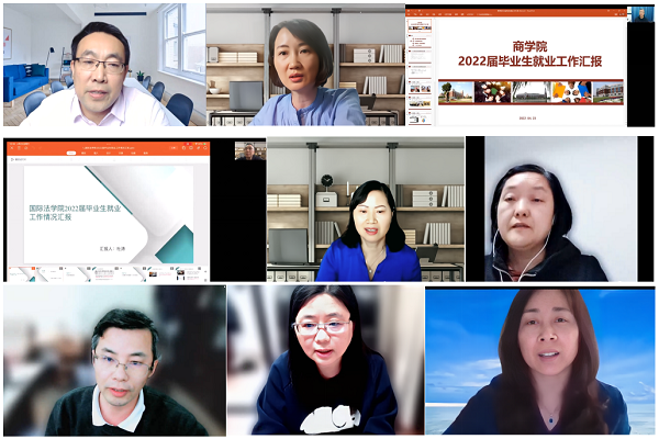 马克思主义学院院长赵庆寺、国际金融法律学院党委书记朱小萍、商学院党委书记高纪忠、国际法学院院长杜涛、外语学院院长余素青、法律学院党委书记欧亚就各学院就业情况、推进措施及下一步安排进行了工作交流。研究生院院长屈文生、教务处处长洪冬英和国际交流处处长伍巧芳也结合本部门分管工作在配合推动就业方面的举措及取得的成效进行了汇报。