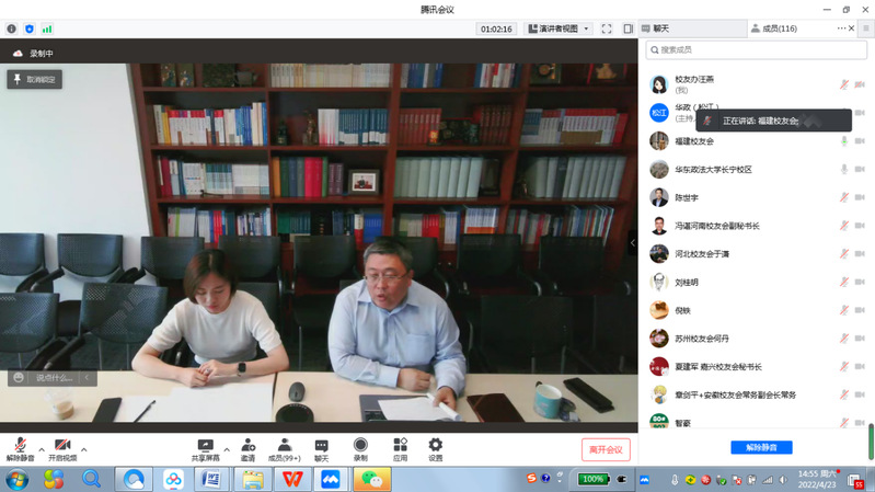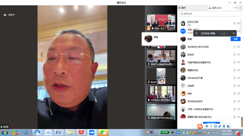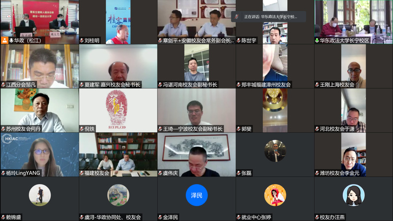 郭为禄向长期以来关心和鼎力支持学校事业的各地校友会会长秘书长、校友会理事表示衷心感谢,特别是在这次华政园抗“疫”中,感受到广大校友前所未有的温暖。他表示,当就业关键期遇上疫情攻坚期,是巨大挑战也是新的机遇,要在困难时候看到光明和勇气。在目前外部就业环境异常严峻,毕业生就业心理预期很高的情况下,他强调做好以下四点工作。第一,毕业生就业选择要着眼长远,心胸宽广。转变当前就业观念,从关注上海、长三角、华东地区,转变为到基层去,到祖国最需要的地方去。第二,把握福分和缘分。各地校友会充分利用和发挥当地的社会资源,给师弟师妹提供合适就业建议,搭建毕业生与就业单位桥梁,这是福分。各位毕业生要做好准备,把握师兄师姐提供的难得缘分,共同努力,达成就业意愿。第三,创新思维做就业工作。广大校友在用人一线,很多想法和建议对人才培养和就业工作多有启发,坚持“开门办学 开放办学 创新办学”发展理念,根据用人需要培养人才,广泛建立实习合作单位,在校学习期间,鼓励在校生多实习,保持与用人单位良好的沟通和关系,从而降低就业难度。第四,做好牵线牵手工作。从用人单位反馈来看,华政毕业生在用人市场上有很强的竞争力,学校做好人才输送,期待在广大校友的牵线联络推荐下,毕业生与用人单位做好牵手联系,让毕业生就业更加顺利。