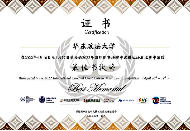 近日,2022年国际刑事法院中文模拟法庭竞赛在线上圆满举办。经过层层角逐,我校代表队荣获一等奖和最佳书状奖,这也是2016年以来我校代表队连续第七年荣获该项赛事一等奖。