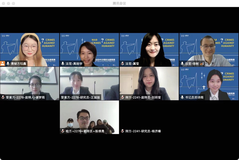 今年赛题覆盖面广、难度大,涉及国际刑法的前沿问题,要求参赛队员全面学习国际人道法和国际人权法的有关知识,在虚拟案例的背景下讨论国际刑事法院的管辖权及被害人代理人等问题。本届华政代表队于2021年10月组建队伍。比赛前期,参赛队员在马贺老师的带领下精读战争罪的经典案例,结合国际刑法的经典著作,以武装冲突的概念为起点,构建扎实的知识体系,为比赛打下良好基础。备赛过程中,参赛队员克服疫情带来的重重困难,修改书状十数稿,线上模赛几十场,相互扶持,协同作战,出色完成了文书撰写和庭辩工作,最终赛出华政学子的精神和风采。