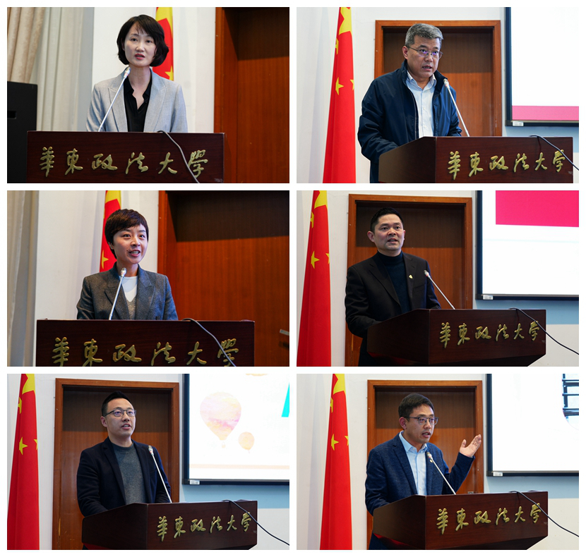 工作交流环节,国际金融法律学院党委书记朱小萍、商学院党委书记高纪忠、校团委书记张晶星、法律学院党委副书记汪靠斌、刑事法学院党委副书记吴江、知识产权学院党委副书记李家铭分别围绕学生就业、志愿服务、学生党建、园区建设、危机处置等工作进行分享。