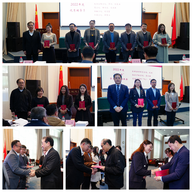 会上还对2022年度优秀辅导员、2022年度翰鸿学生工作奖教金、2022年度“问渠源”学生工作奖教金获奖老师进行了表彰。