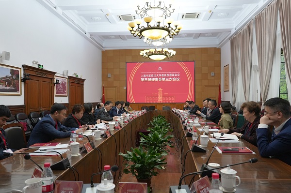 近日,我校教育发展基金会(以下简称“基金会”)第三届理事会第三次会议在长宁校区交谊楼召开。校党委书记郭为禄,校党委副书记、校长叶青,校党委副书记应培礼,上海市民政局基金会管理处副处长居文薇及第三届理事会部分基金会理事、监事,校审计处处长、基金会监事长孙黎明,校财务处处长、基金会财务主管孙文红,校社会协同合作处副处长、基金会秘书长王美丽,校基金会副秘书长韩景南等出席会议。会议由校社会协同合作处处长、教育发展基金会理事长虞浔主持。