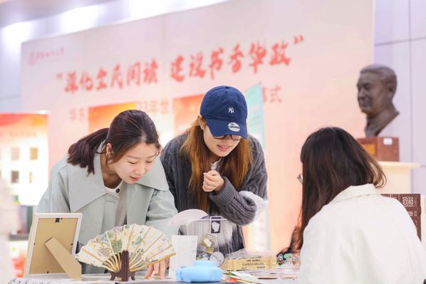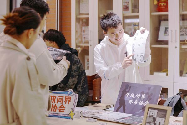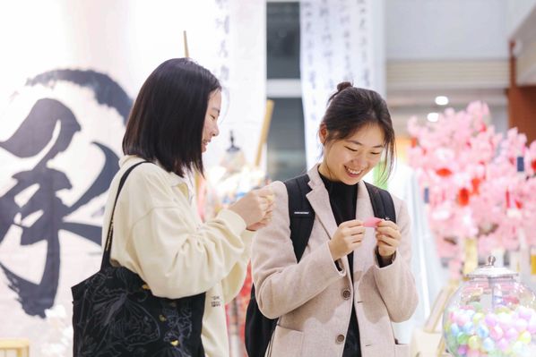 图书馆联合华政刀画社、百外书社、汉韵社、一隅诗社、相声社、民乐团、戏曲社、陶笛社、咏春社、书志会共同打造了一场传统文化盛宴。十个社团风格各有千秋,但背后都蕴含着深厚的文化内涵。刀画社的刀画艺术以刀代笔,集国画、油画之长,活动现场推出手绘扇子项目。百外书社深耕书法文化,握笔挥毫间尽显文化积淀,手写书签活动颇具诗意。汉韵社不仅展示了缠花、绒花等非物质文化遗产技艺,茶饮体验也别具一格。一隅诗社以诗表心、以诗会友,推出诗词扭蛋,为同学们带来全新体验。戏曲社以脸谱绘制展现戏曲文化独特的艺术风采。民乐团则汇聚中国各类传统乐器,古韵十足,用趣味竞答推广中国传统民乐文化。除了以上社团带来的文化体验项目,现场还有精通“说学逗唱、捧哏逗哏”的翻斗客栈相声社、传承创新的问界咏春社和心海陶笛社带来文化展示。
