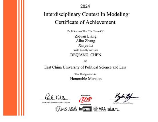 2024年美国(国际)大学生数学建模竞赛一等奖获奖证书