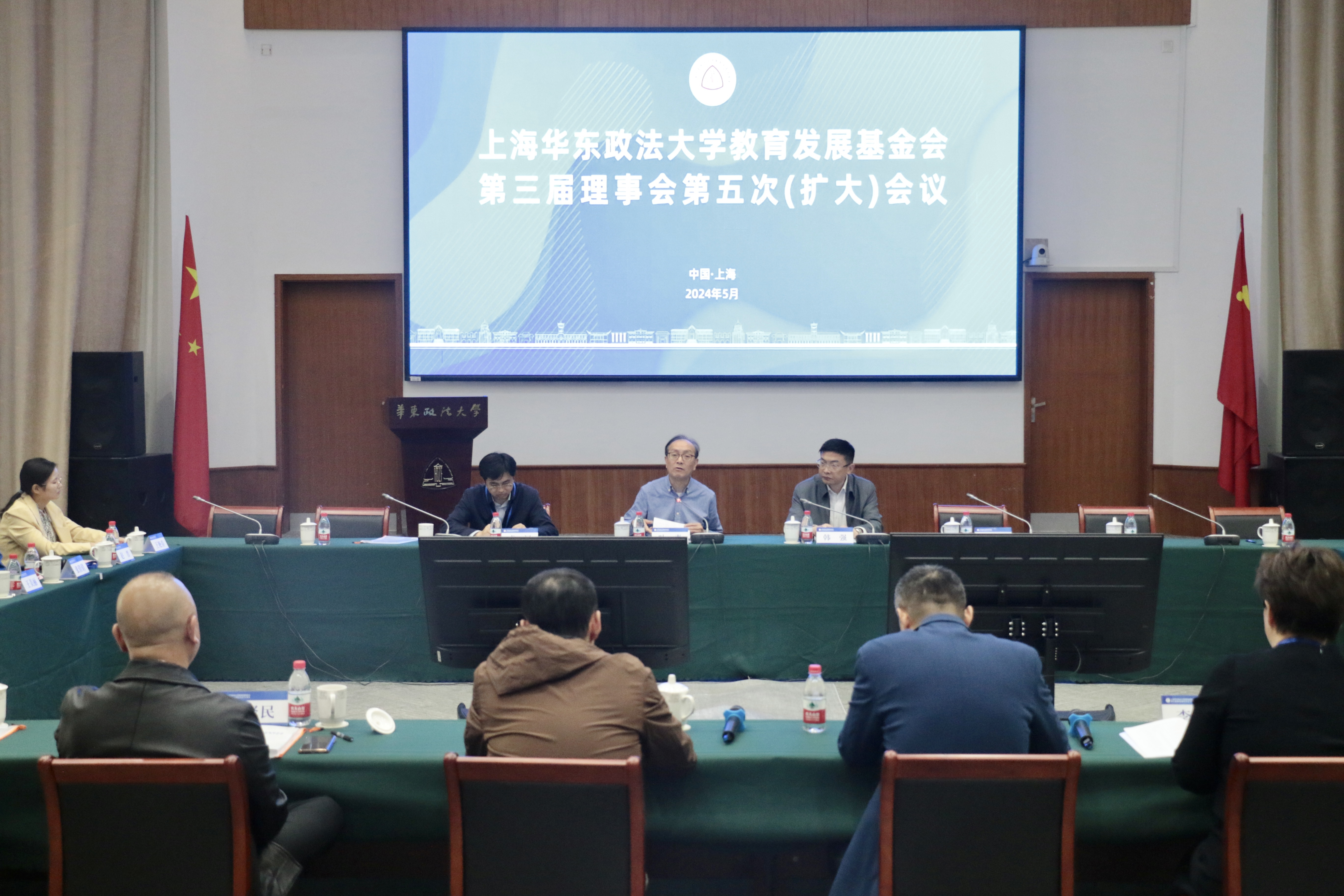近日,我校教育发展基金会第三届理事会第五次(扩大)会议在松江校区尚法厅举行。校党委副书记、校长叶青,校党委副书记韩强,第三届理事会部分基金会理事、监事和捐赠人代表出席。会议由社会协同合作处处长、教育发展基金会理事长虞浔主持。