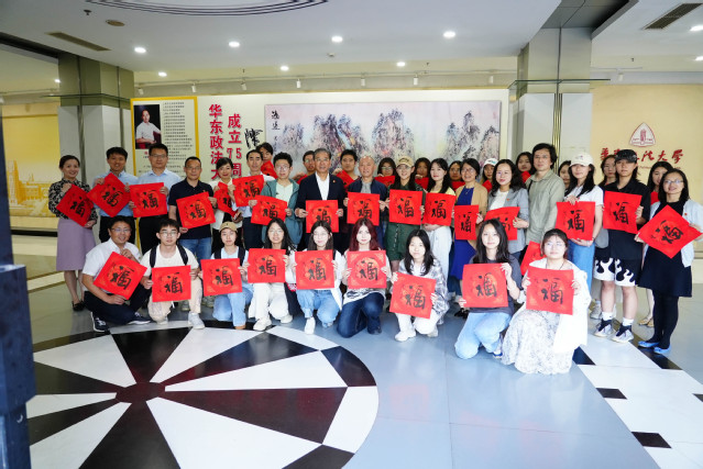 与会师生手持“福”字合影留念,表达了对新中国成立75周年的美好祝福。