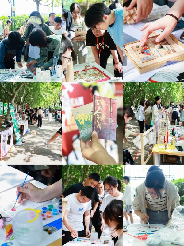 本次传统文化主题活动分为“游园会”与“主题展演”两个部分。游园会于网红梧桐道开幕,设置百外书社、韬奋文学社等19个摊位,打造“12生肖集章”与“红楼角色体验”两条线路。蹴鞠跃动,踢出激情;围棋之变,玄机重重;太极文化,刚柔并济;挥毫泼墨,书签自制;古风谜题,绞尽脑汁;诗词对弈,不分胜负。此外还有知识问答、古法制香、茶肆品茗,国风NPC与游园观众现场飚戏……内容丰富、形式多样,让华政青年于欢声笑语中感知优秀传统文化、体验优秀传统文化、爱上优秀传统文化。法律学院大四的张清远同学表示:“大学四年我第一次参加这种传统文化游园会,我抽到了贾宝玉的身份,以宝二爷的视角游园、逛摊点,感觉好热闹、好新奇。我还制作了一块冷香丸、描绘折扇,让我体会到原来传统文化也可以很清新,并不是曲高和寡的。”