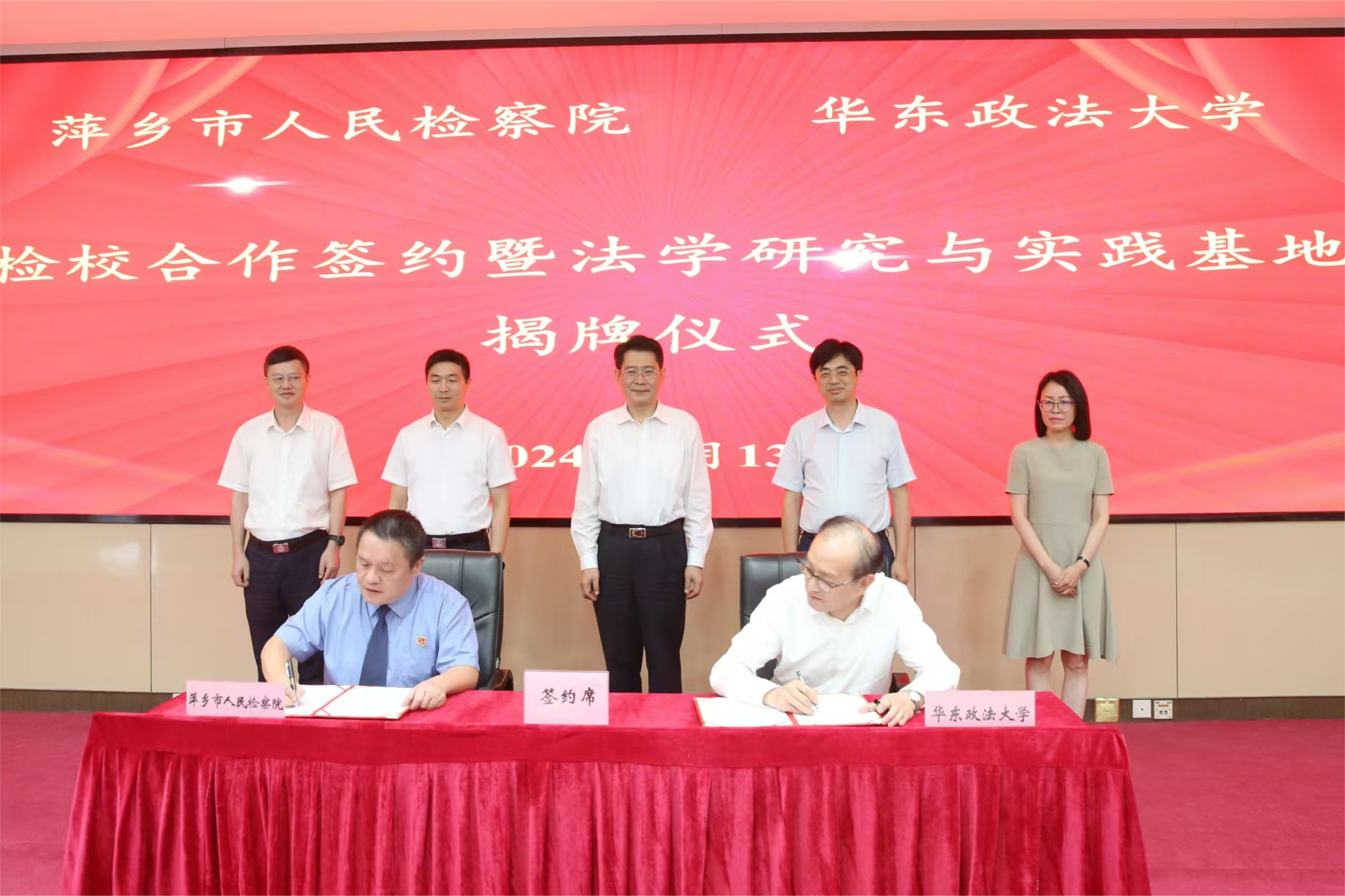8月13日,我校与萍乡市人民检察院检校合作签约暨法学研究与实践基地揭牌仪式在萍乡市人民检察院举行。我校党委副书记、校长叶青,萍乡市委书记刘烁出席并致辞。我校社会协同合作处处长虞浔、华东检察研究院执行院长王戬等出席会议。