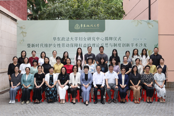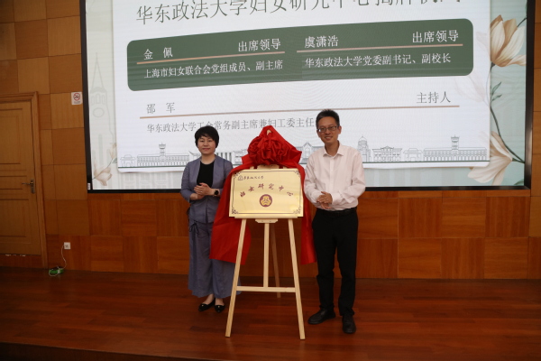 9月29日,我校妇女研究中心揭牌仪式暨新时代维护女性劳动保障权益的理论反思与制度创新学术沙龙在长宁校区召开。此次活动由上海市妇女联合会指导,上海市妇女儿童发展研究中心与我校妇女工作委员会主办,上海市妇女学学会和上海市婚姻家庭研究会协办。来自校内外的领导、专家学者逾50人参加活动。我校党委副书记、副校长虞潇浩与市妇女联合会党组成员、副主席金佩共同为研究中心揭牌。揭牌仪式由校工会常务副主席邵军主持。