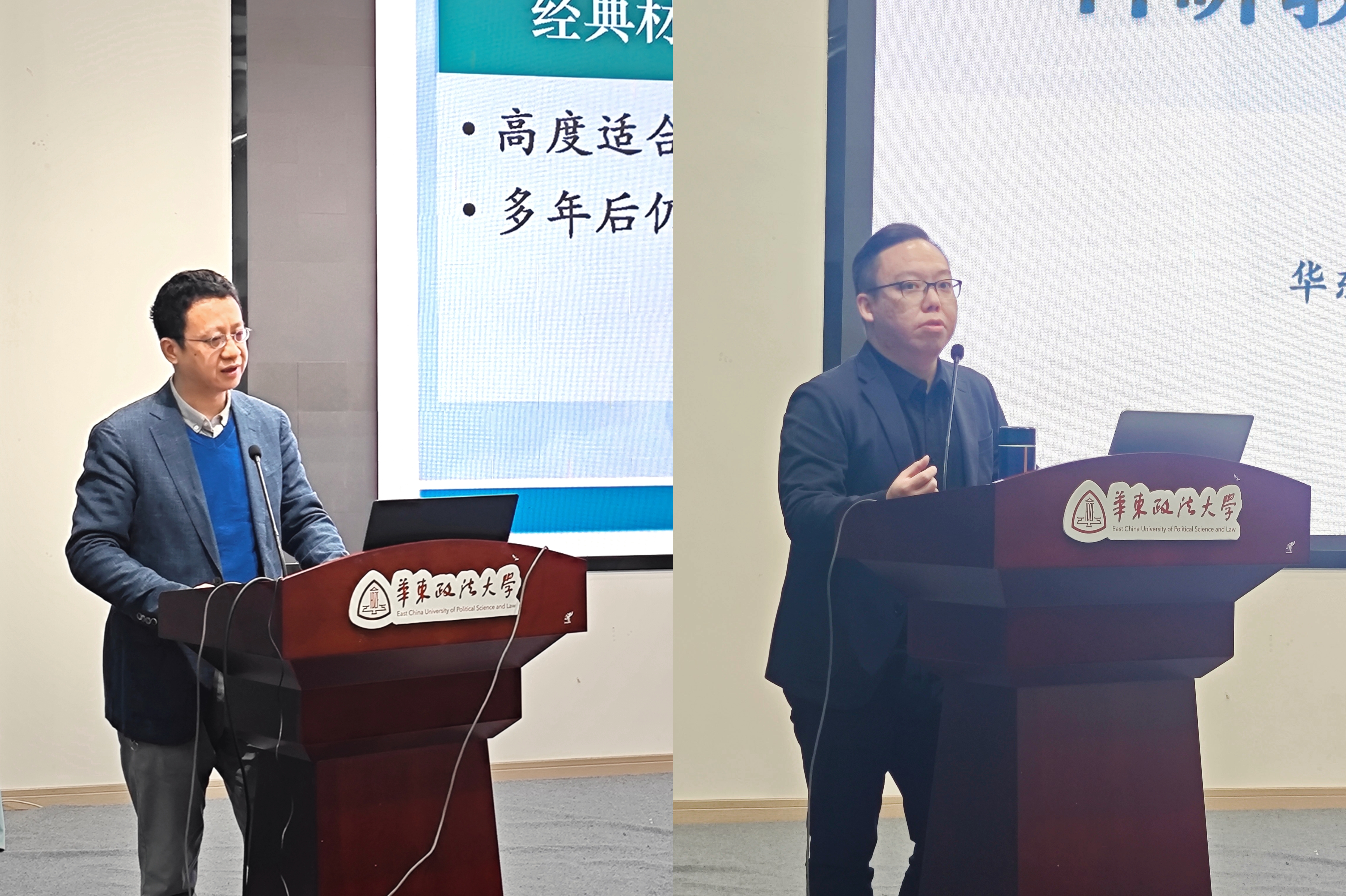 在名师讲坛环节,资深教师代表王迁教授从如何精心备课、科研与教学融合、通过撰写教材提升自己、如何申报课题与开展学术研究四个方面解读了如何“做好一名大学教师”。青年教师代表姚明斌教授从个人科研与教学规划的“三结合”、融合总体计划与细节管理开展科研工作、注重探索整全的课程机制提高教学等三个方面进行经验分享,他还特意强调,自己的成长离不开王迁教授的启迪和帮助。两位教授的讲授既诠释了正己守道的师德修养,也传递着启智润心的责任担当。