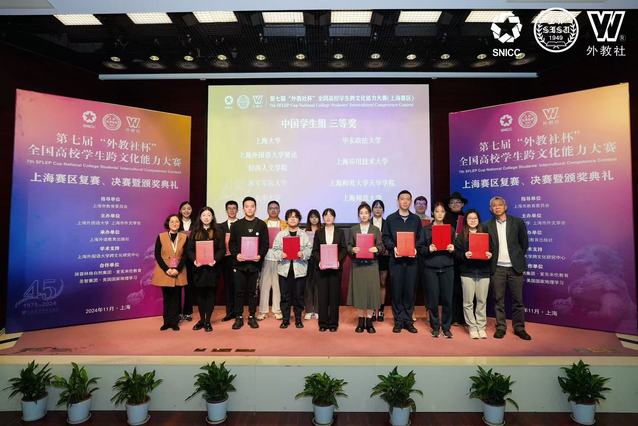 近日,第七届“外教社杯”全国高校学生跨文化能力大赛上海赛区比赛在上海外语教育出版社举行。由我校本科生陆虹竹(外语学院2023级)、安琪儿(政府管理学院2024级)、周松生(经济法学院2024级)组成的华政代表队一路过关斩将进入复赛,最终斩获三等奖。
