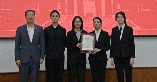 本次竞赛辩题聚焦人工智能生成物的可版权性问题。经过近八小时紧张激烈的比赛,我校获得冠军,复旦大学获得亚军,清华大学和湘潭大学并列季军。我校张霖潇同学、复旦大学魏籽杰同学获得最佳辩手奖。复旦大学斩获最佳上诉方书状奖和最佳被上诉方书状奖。丛立先院长和王太平教授为获奖队伍颁奖。