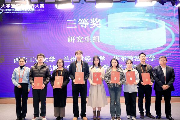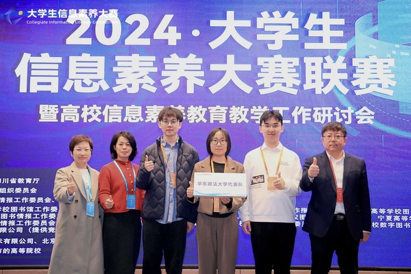 12月5日,2024年大学生信息素养大赛联赛暨高校信息素养教育教学研讨会在重庆举行。我校图书馆馆长朱俊,图书馆参考咨询部主任郭海霞和馆员李梅瑛参加会议。我校刑事法学院王文俊和知识产权学院董树雨、沈嘉炜组成的“知刑合一”队作为上海赛区研究生组一等奖获奖队伍,代表上海赛区首次参加联赛,最终荣获研究生组三等奖,李梅瑛获得优秀指导老师。