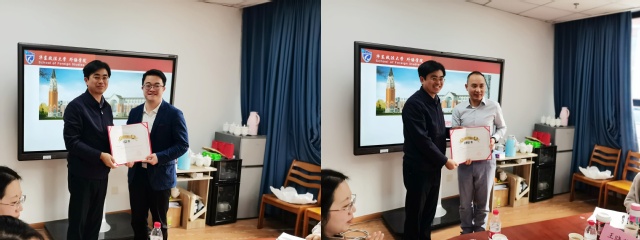 虞浔介绍,近年来校友捐赠成果显著,校友基金的设立为学校学科建设、教学科研、师资队伍和人才培养等方面提供了重要支持。虞浔向两位杰出校友颁发捐赠证书。