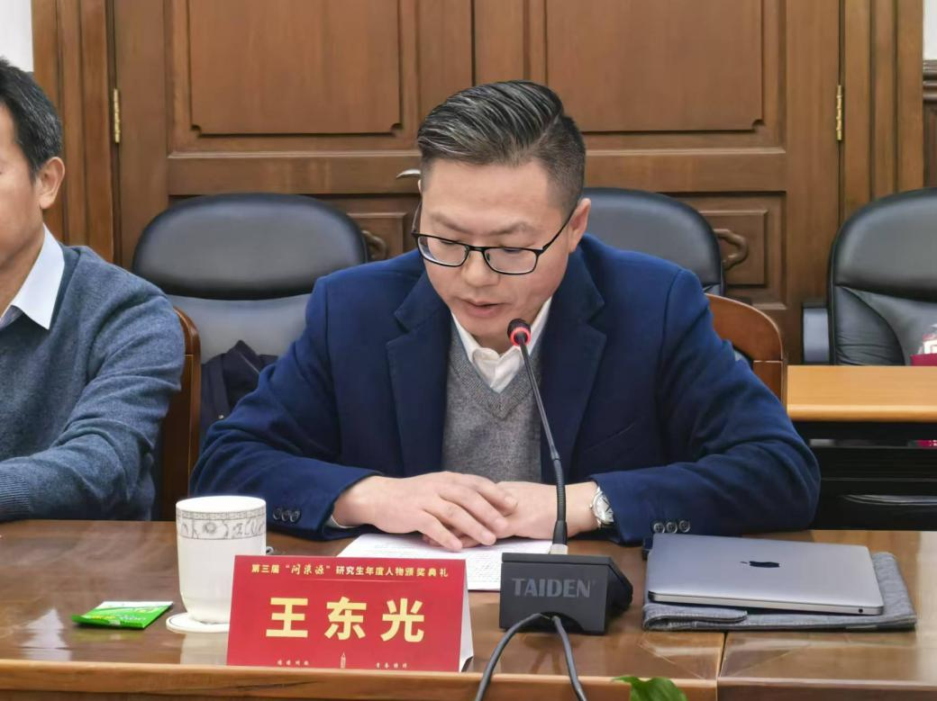 经济法学院副院长王东光作点评发言,他希望获得荣誉的同学能够带着研究生年度人物这张名片,再接再厉,创造更大成绩。