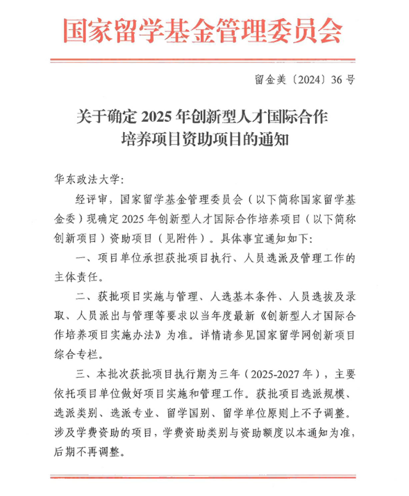 此次获批项目为我校与西澳大学联合培养博士项目,学生每学年可分两批申请,项目学费全免,留基委同时将资助5名学生一次性往返国际旅费及资助期限内的奖学金,是我校贯彻育人资源力量联通、贯通、融通基本战略的实质成果,也是我校实现培养具有家国情怀和国际视野的涉外法治人才目标的有力体现。此次获批将进一步夯实我校与西澳大学的战略伙伴关系,为西澳大学上海校区建设奠定坚实基础,促进更高层次的学术、人员往来。