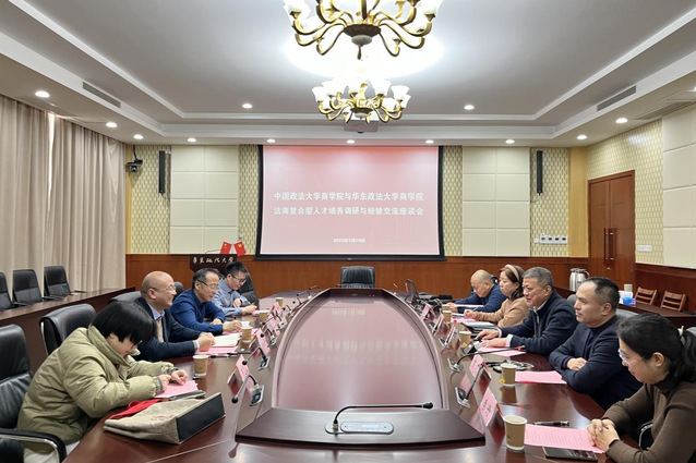 1月10日,中国政法大学商学院与我校商学院在长宁校区问渠源楼四楼会议室联合举办法商复合型人才培养调研与经验交流座谈会。本次会议旨在探讨法商复合型人才培养的实践经验及未来方向,助力两校在高质量教育发展中的深入合作。