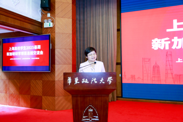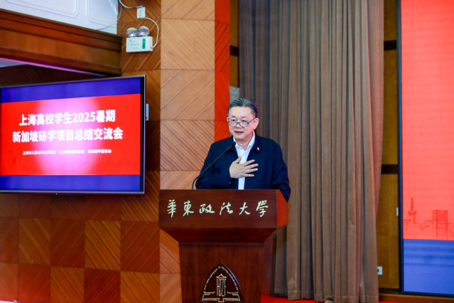 周立志介绍了学校历史与学科优势,肯定了我校学生在本次研学中的表现。他表示,学校将进一步加强与新加坡在高校、青年与人文等领域的合作,特别是在涉外法治人才培养与上海国际法律服务中心建设方面深化交流,持续拓展中新青年友好互学平台。