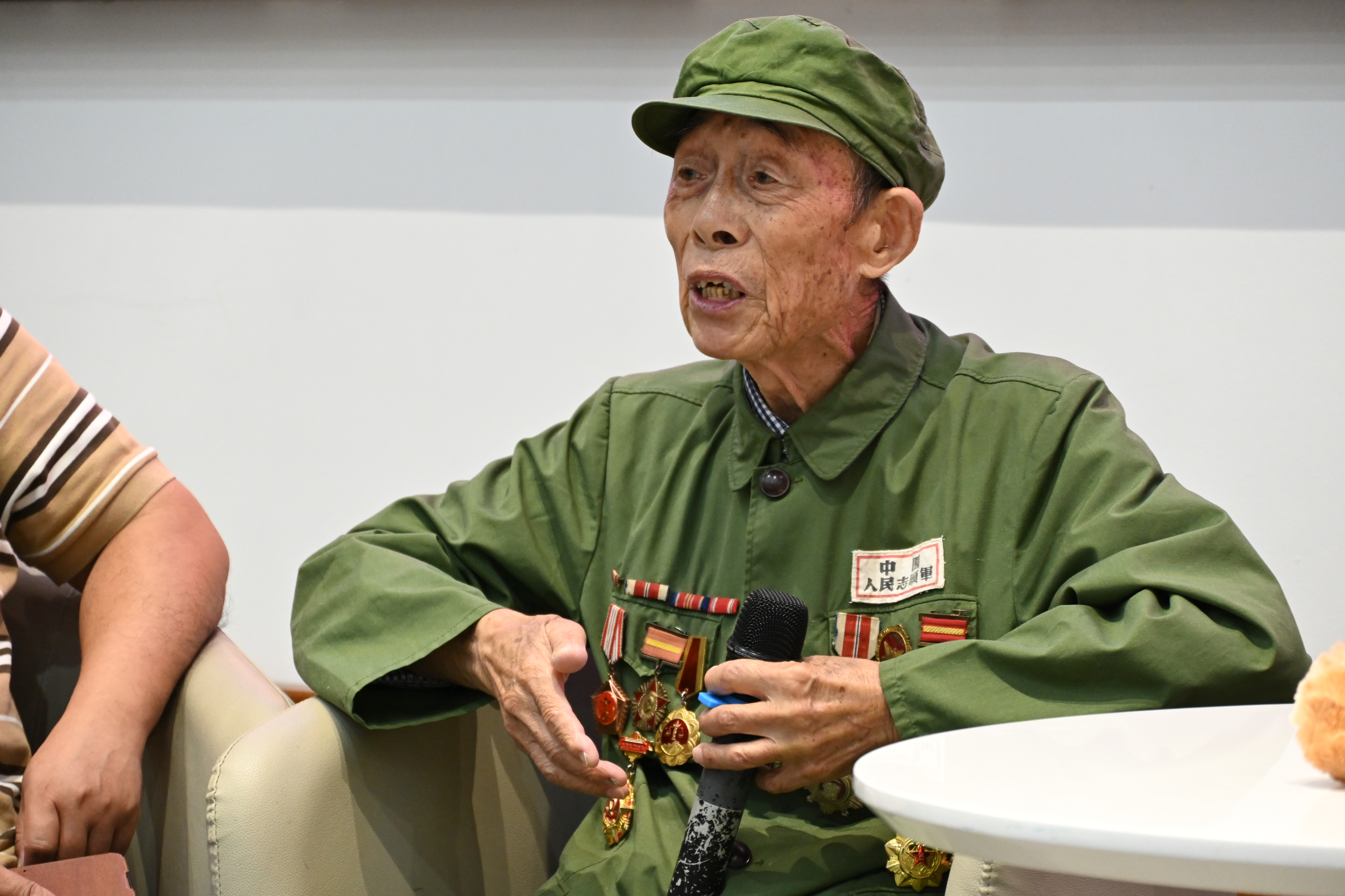 “零下四十度的长津湖,战士们啃着冻得硬邦邦的土豆,趴在雪地里一守就是十几个小时,哪怕冻成了‘冰雕’,手指还紧紧扣着扳机……” 活动现场,松江区老兵讲故事宣讲团名誉团长朱渭民老师以“长津湖战役”为主题,用饱含深情的讲述打开了时光闸门。