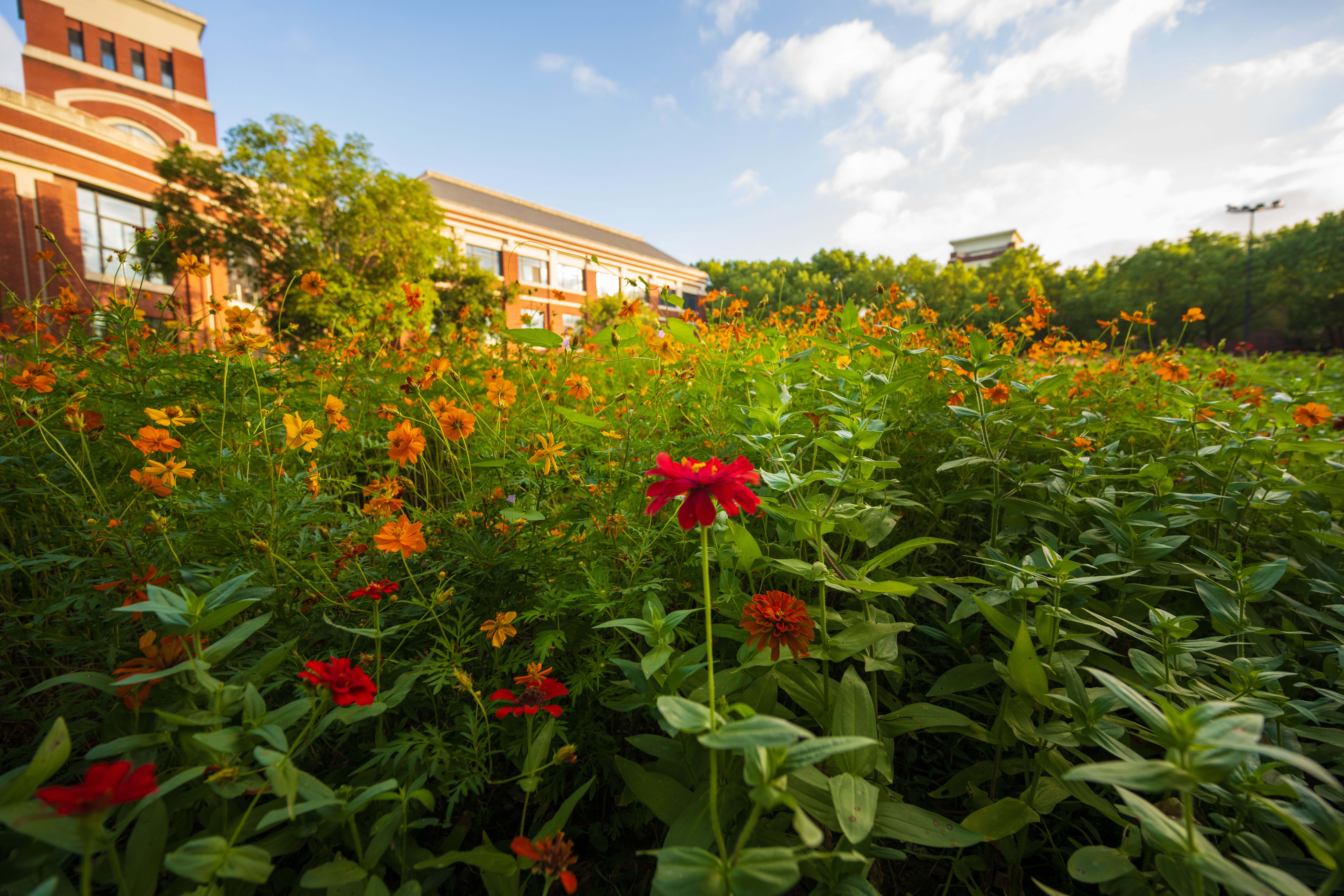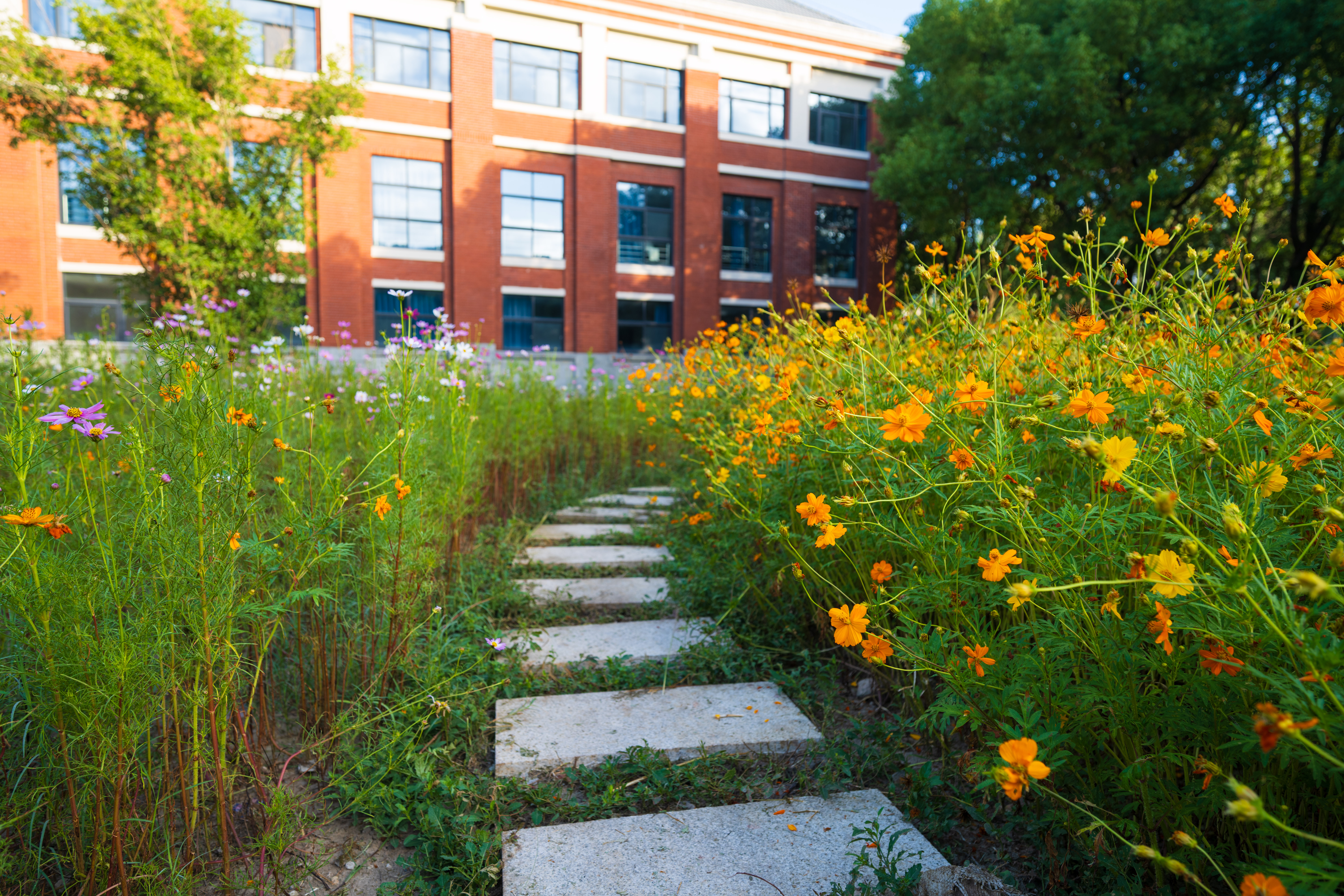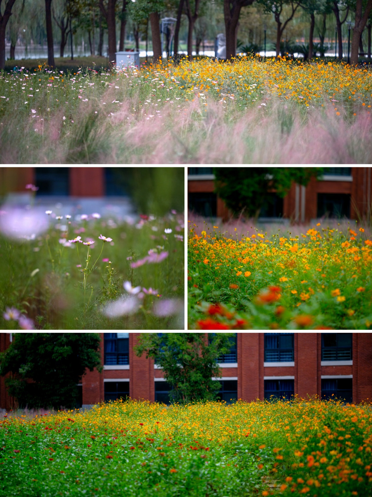 绚烂花海的背后,是学校后勤工作人员的辛勤付出与满满心意。他们精准计算花期,精心挑选适配秋日的花种,日复一日呵护其生长,用汗水为师生打造出兼具学习氛围与自然之美的校园环境。
