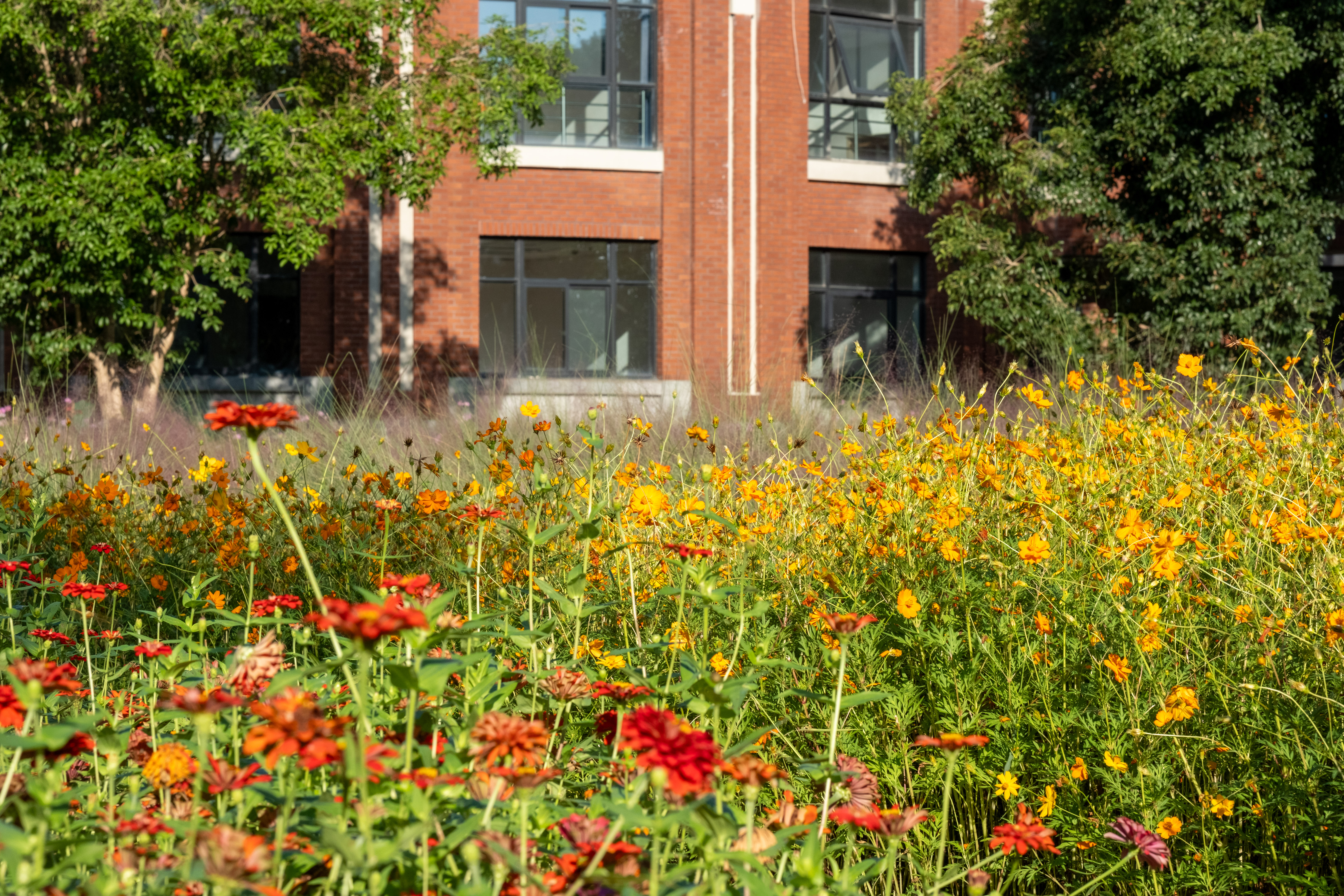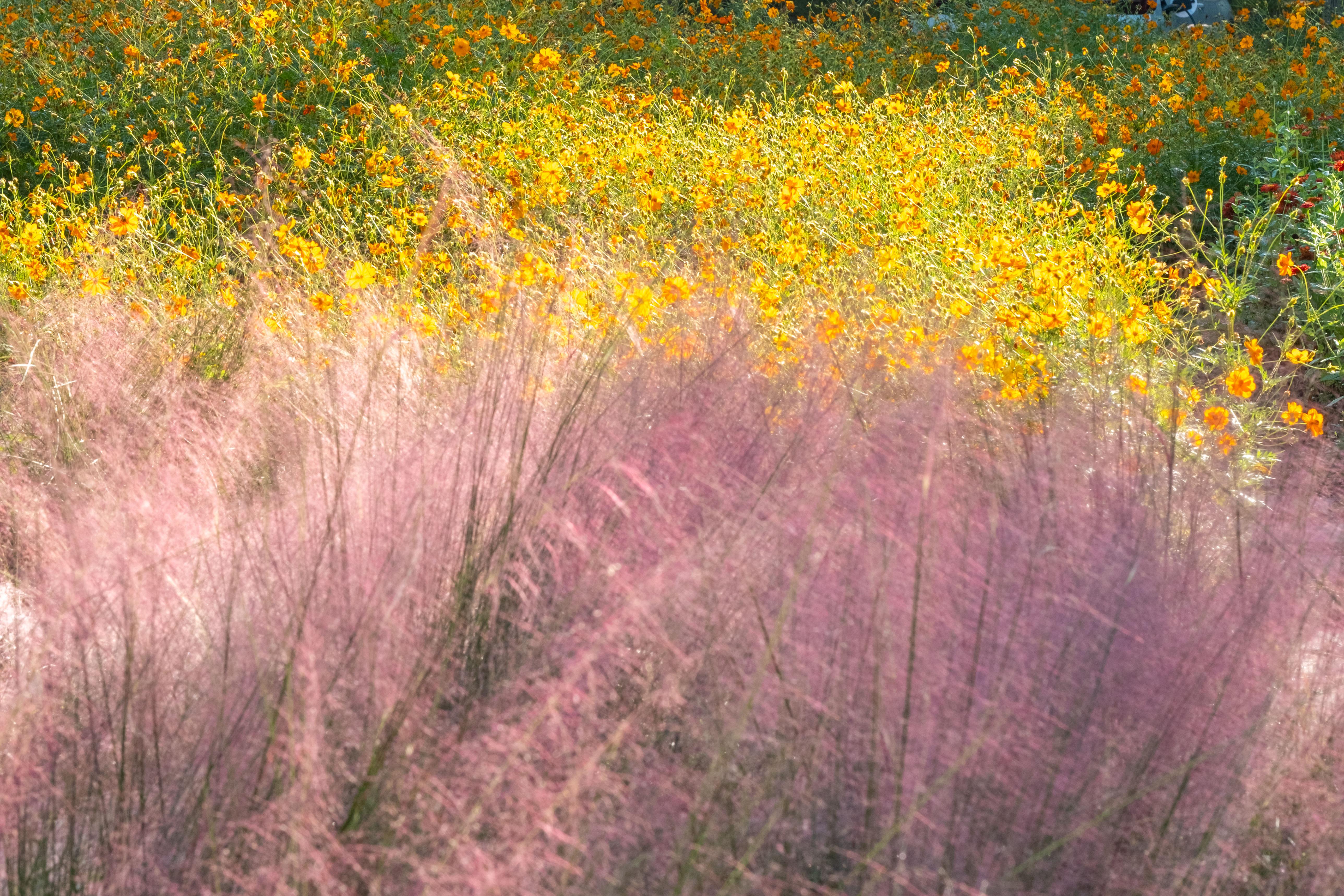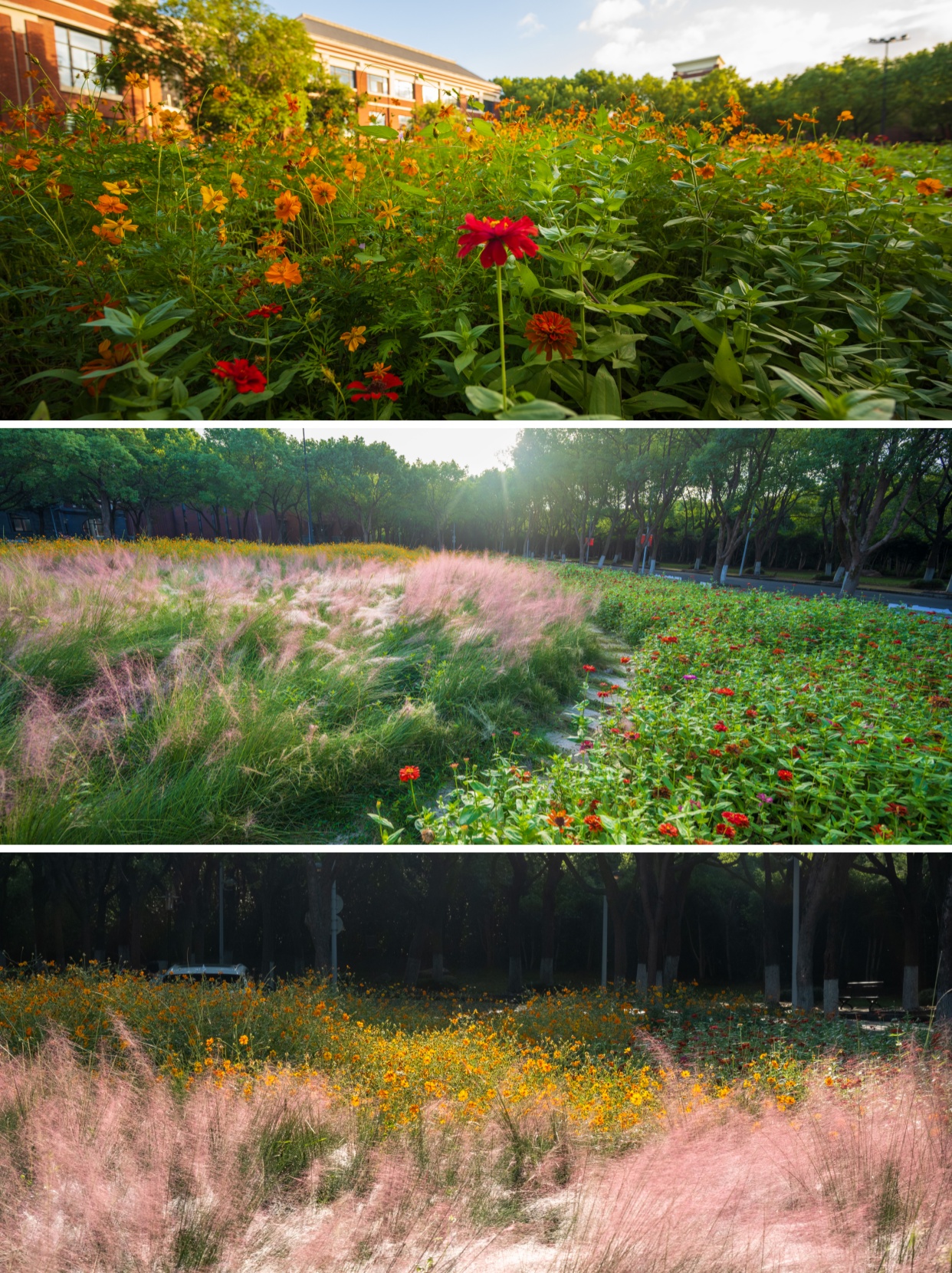 粉黛乱子草、金黄硫华菊、红艳百日草,带着满满心意茁壮成长。目之所及,一片花瓣都沐浴着暖阳,汇聚成无边的缤纷。