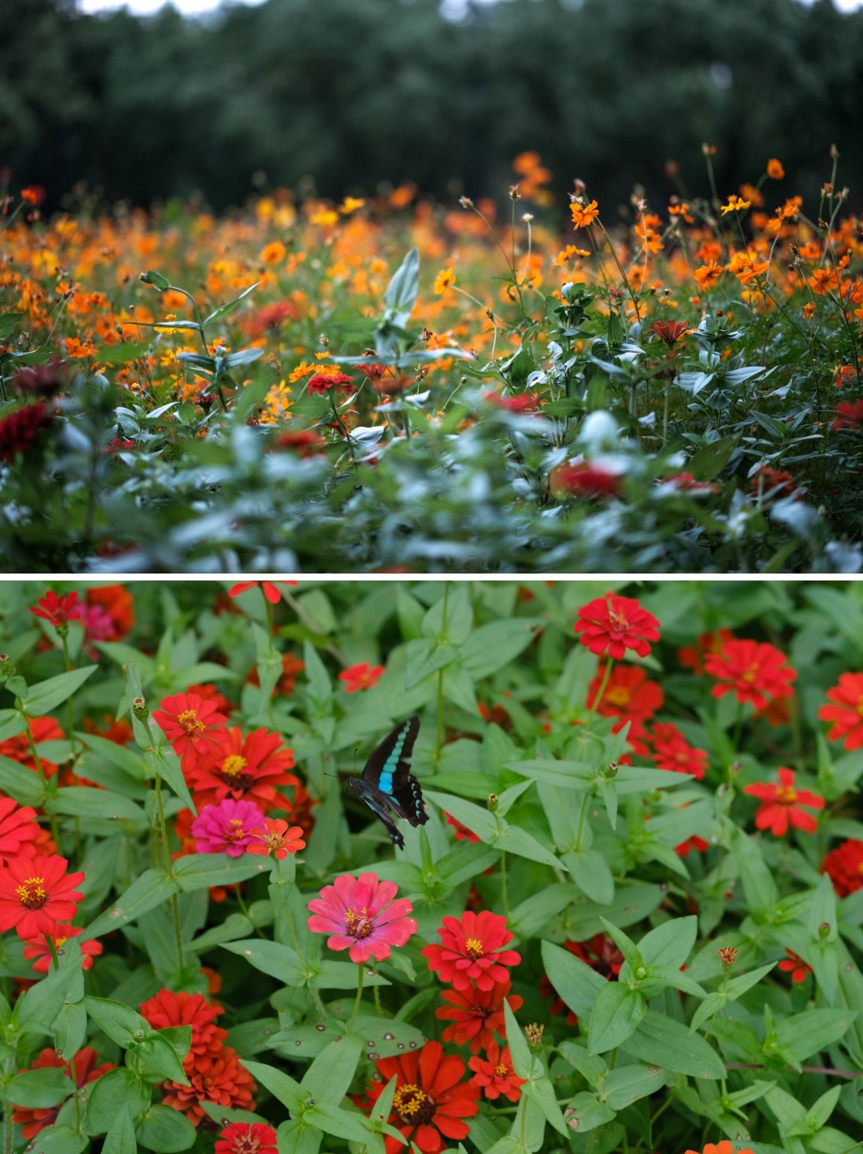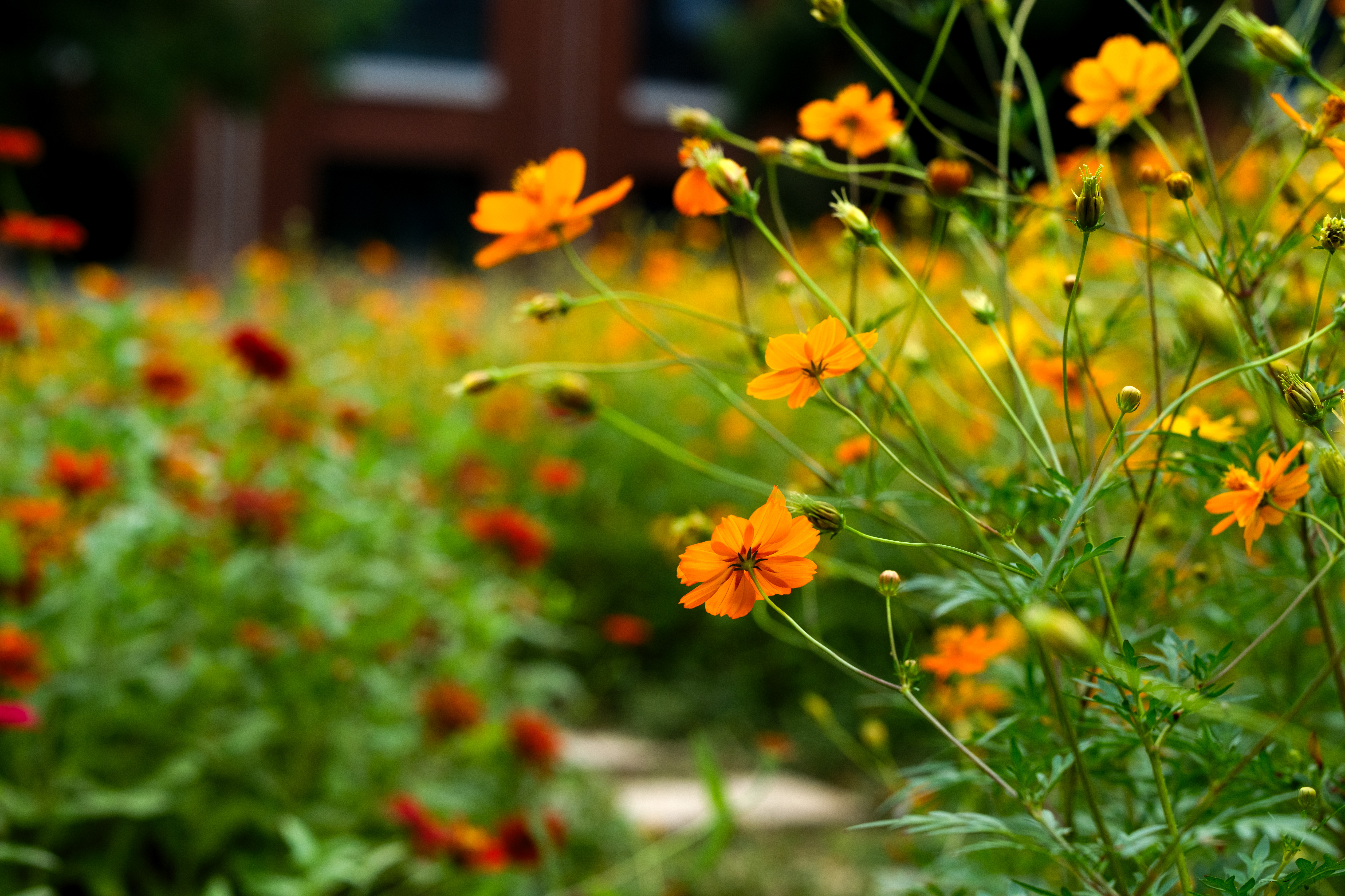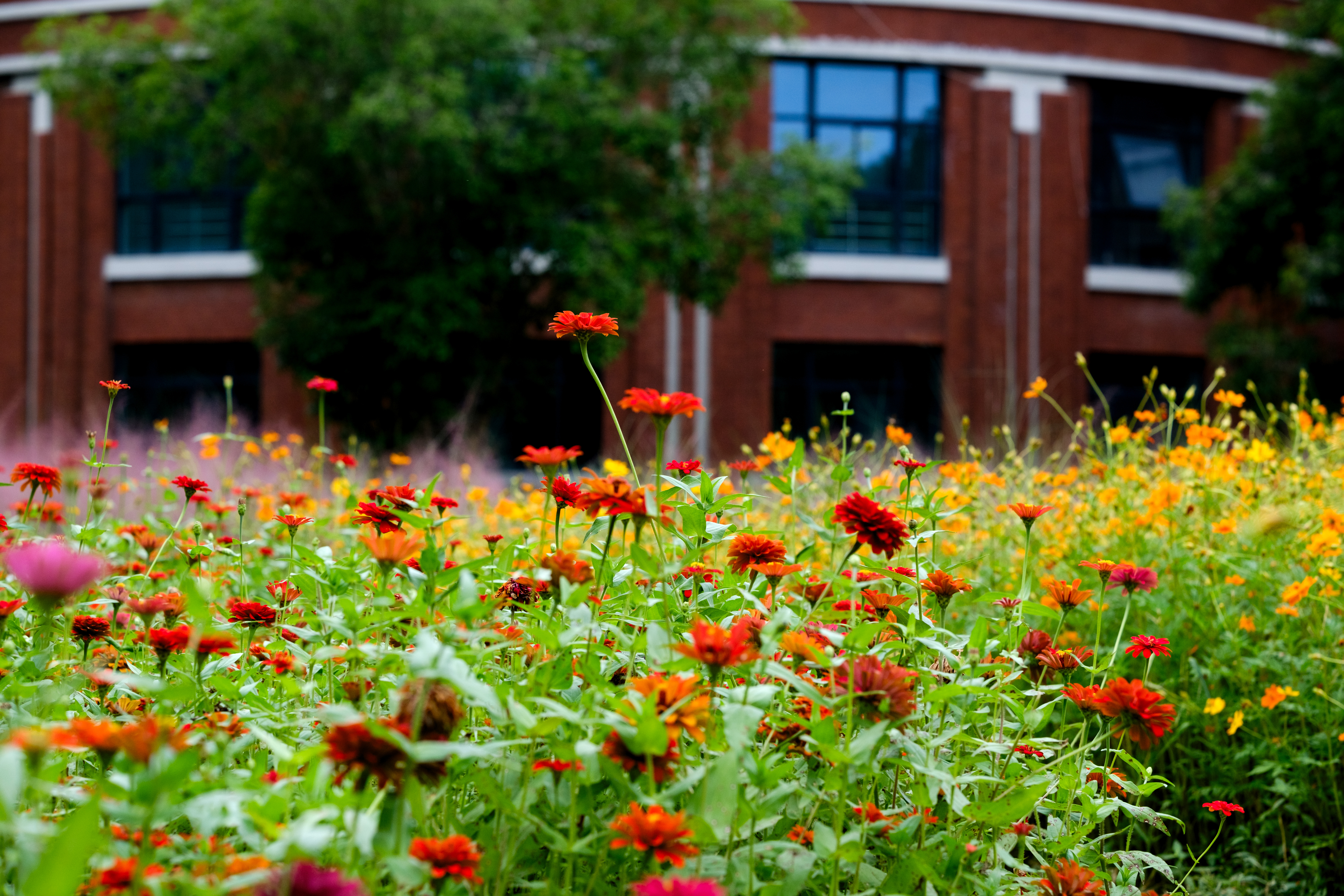 粉黛乱子草、金黄硫华菊、红艳百日草,带着满满心意茁壮成长。目之所及,一片花瓣都沐浴着暖阳,汇聚成无边的缤纷。