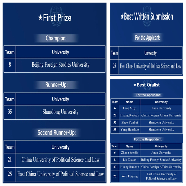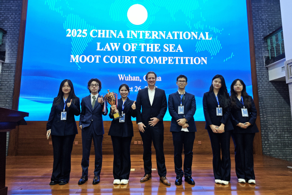 10月26日,2025年中国国际海洋法模拟法庭竞赛(英文)在武汉大学落下帷幕。在循环赛中,我校代表队以出色的表现成功晋级中国国际海洋法模拟法庭竞赛四强,最终获团体一等奖,与中国政法大学并列季军,获申请方最佳书状,庭辩员闻菲阳获答辩方最佳辩手。