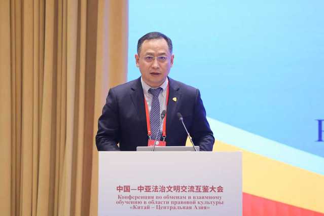 司法部副部长武增,中国法学会副会长钱锋,新疆维吾尔自治区党委副书记、政法委书记陈明国出席开幕式并致辞。会上正式成立“中国—中亚法学教育联盟”,我校作为创始成员单位加入该联盟,肖凯代表学校按下联盟成立启动键,共同见证这一重要时刻。