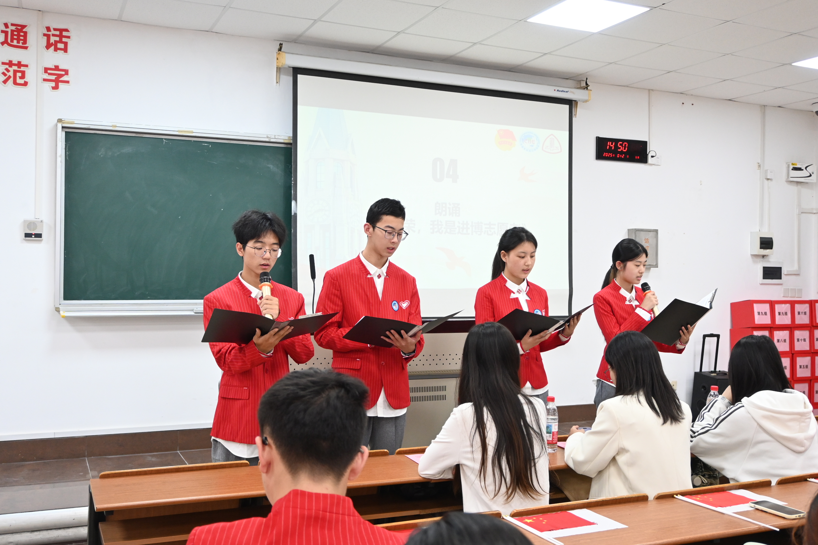 仪式上,正式成立第八届进博会志愿者临时党、团支部。党员代表胡琼月、团员代表刘宸玥带领全体党团员重温入党、入团誓词。铮铮誓言回荡会场,是“小叶子”坚守志愿初心的写照。志愿者代表任逸飞分享经历,作为曾服务新疆生产建设兵团的西部计划志愿者,他坦言“从西北边陲到国际舞台,志愿初心不变”,真挚话语引发共鸣。随后,吴昀羲等四位同学带来原创诗朗诵《我光荣,我是进博志愿者》,激昂情感将现场气氛推向高潮。