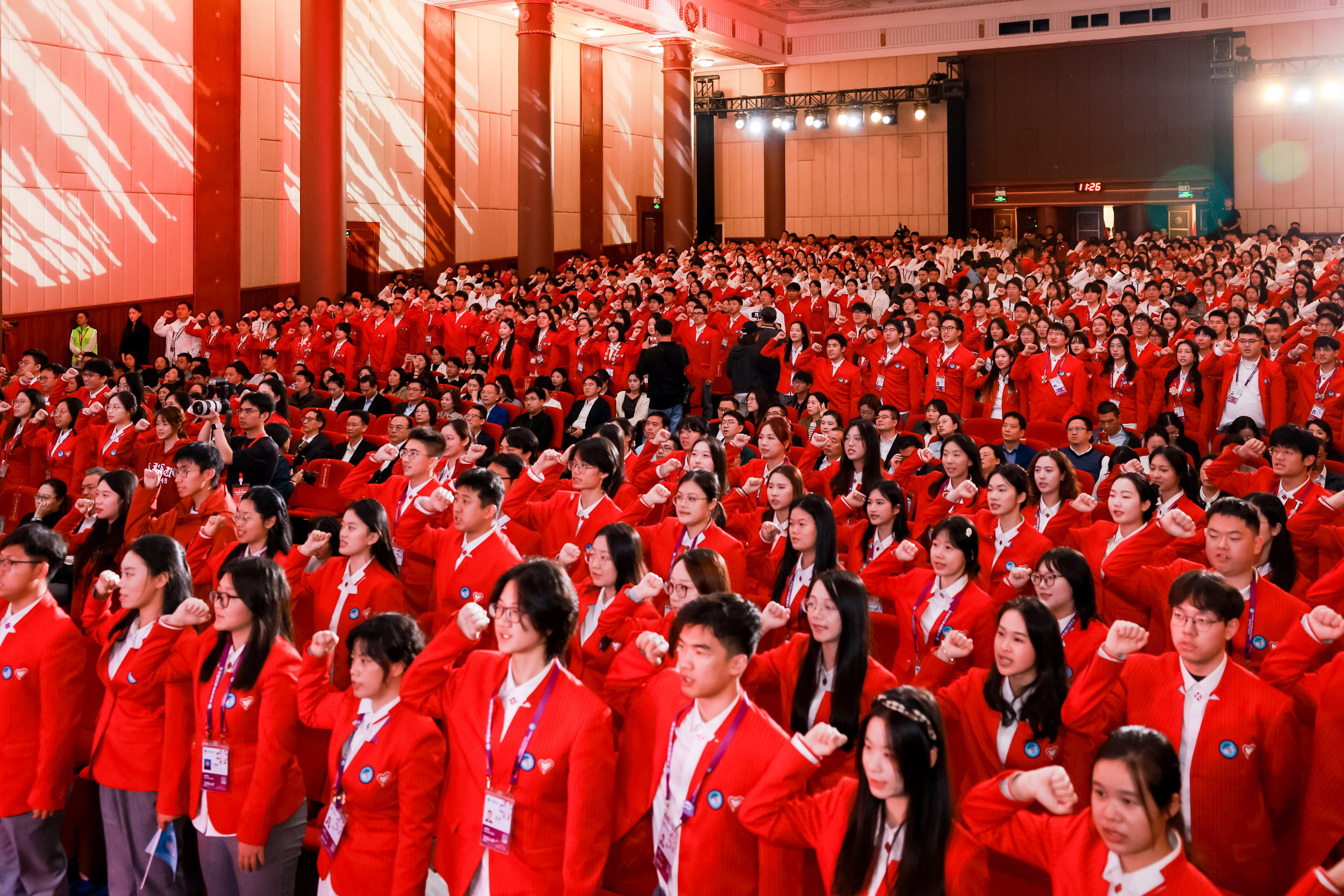 学校还为“小叶子”送上“出征大礼包”,内含定制服装、水杯、双肩包,融入华政、进博、上海元素,满含期许。激昂乐曲中,志愿者代表谢思欣接过服务队队旗,红旗挥舞间传递责任与荣誉。随后,全体志愿者宣誓:“向前进,博青春;为进博,一起来……”字句千钧,彰显奉献决心。