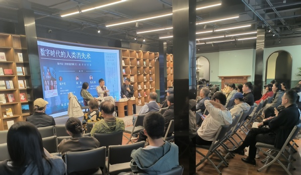 新书分享会邀请《上海文学》执行主编崔欣、上海理工大学出版学院教师刘长庚作为对谈嘉宾。崔欣从编辑角度回顾了与姬中宪多年合作经历,称其作品完成度高、可读性强,《穿西装的椅子》兼有社会学的群像视野与文学的私人视角,其幽默与思辩并存的特质在当下文学中尤为珍贵。刘长庚则指出姬中宪以写作自证,多年来敏于观察、勤于思考,作品始终站在时代的前沿,对新技术抱持热情与警惕。在今年6月由《十月》杂志社举办的国内首次人机合作返乡叙事征文大赛中,姬中宪就以《团雾与横风》一文摘得首奖,授奖辞中说他的作品与写作方式“共同构成了一份关于创作本质的宣言:技术是工具,个体的生命体验与审美抉择、情感与判断力,只能属于人。”最后,三人还与现场读者一起探讨了在技术迭代更新的今天,如何以人文社科思想为底色,以人的情感表达与社会联结为武器,共同捍卫人的尊严。