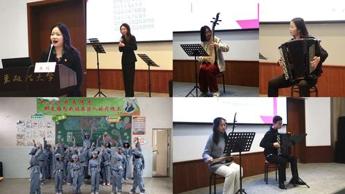 11月5日中午,作为2025年我校民族魅力文化月的重要系列活动之一,一场别开生面的“忆手风琴红色往昔”音乐党课在松江校区尚法厅温情上演。本次活动由党委统战部主办,将红色党史、经典音乐与民族团结教育深度融合,特邀上海音乐学院音乐学系党总支副书记朱政带领师生赏析红色经典作品,并现场连线云南麦地小学共上一堂课,生动展现了大中小学思政教育一体化的育人成果。副校长周立志出席党课,活动由统战部副部长周莉主持。