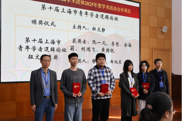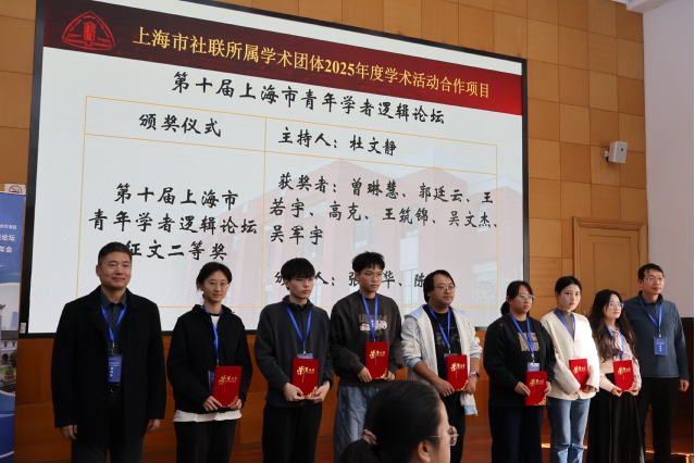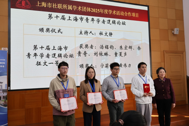 颁奖仪式上,杜文静宣读了第十届上海市青年学者逻辑论坛征文获奖名单。宁莉娜为朱宏辉等一等奖获得者颁发获奖证书。