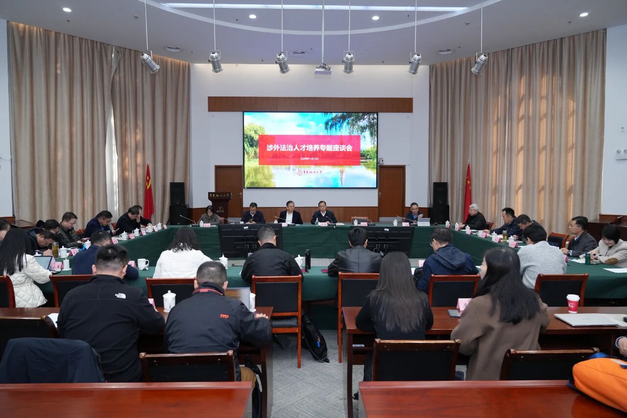 当日下午,肖凯主持召开“涉外法治人才培养专题座谈会”,围绕“锻造政治立场坚定、专业素质过硬、通晓国际规则、精通涉外法律实务的复合型人才”核心目标,就培养体系构建、课程与教材创新、实践教学落地、师资队伍建设、国际合作与交流、特色方向培育、未来规划与保障机制等议题展开深入研讨。