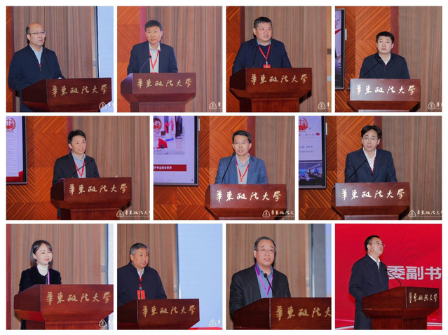 中国政法大学党委副书记黄瑞宇,西南政法大学党委常委、副校长胡尔贵,中南财经政法大学党委副书记陈狮,西北政法大学党委副书记郭武军,甘肃政法大学党委常委、副校长薛志忠,上海政法学院党委副书记、副校长高志刚,山东政法学院党委委员、副校长蒋海升,中央司法警官学院党委副书记刘建会,广东财经大学党委常委、副校长张凯,新疆政法学院校长助理向前出席会议。我校党委书记郭为禄出席开幕式并致辞,校党委副书记、纪委书记陈玉刚主持开幕式。