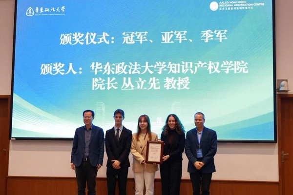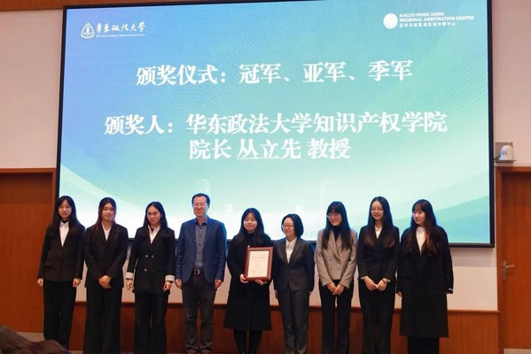 本届赛事聚焦商标反向混淆前沿理论问题。经过多轮激烈角逐,匈牙利卡洛里·加斯帕新教大学获冠军,我校获亚军,清华大学和南京理工大学获季军。清华大学和匈牙利卡洛里·加斯帕新教大学斩获最佳书状奖。我校朱艺佳选手、匈牙利卡洛里·加斯帕新教大学沙娜·海拉提选手获最佳辩手奖。知识产权学院丛立先院长、亚非法协香港区域仲裁中心副主任蔡伟平为获奖队伍颁奖。