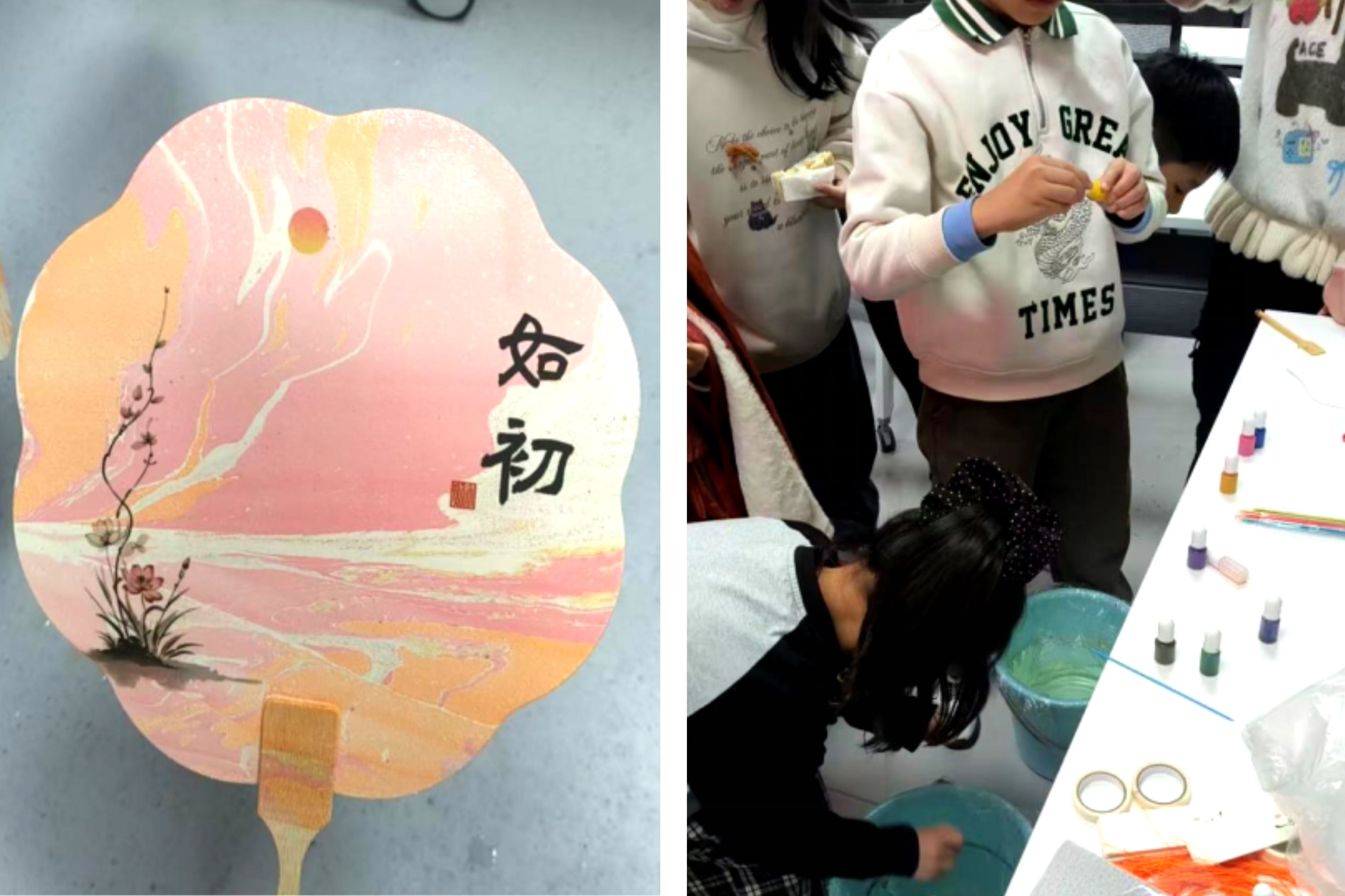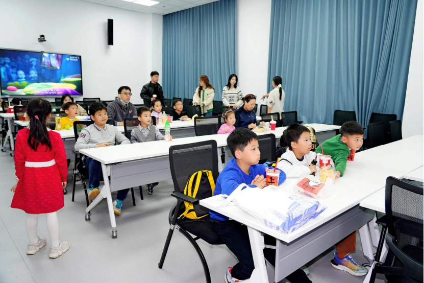 在下午座谈会如火如荼开展的同时,校友亲子活动也在明理楼101同步开展,学生志愿者带领校友家属们体验了非遗活动漆扇,共同欣赏了《哪吒之魔童闹海》《马达加斯加的企鹅》等海内外经典动漫。
